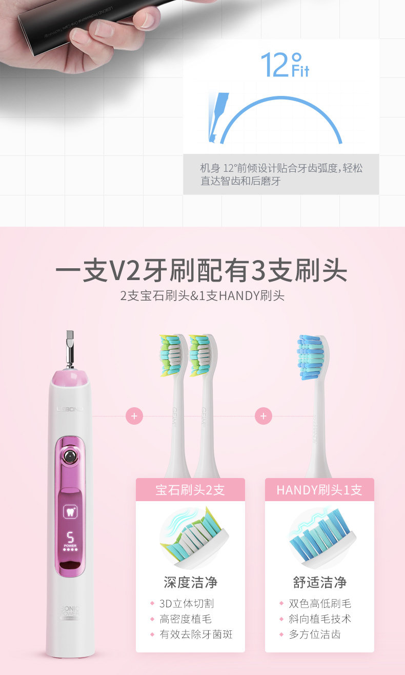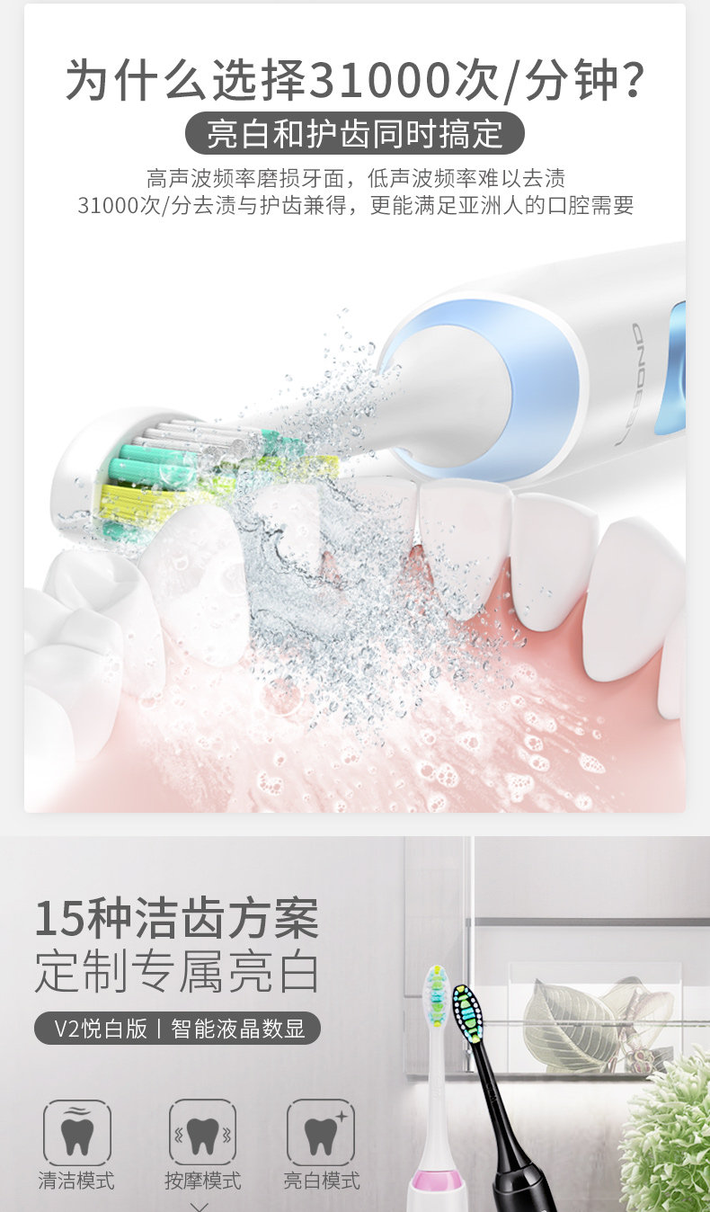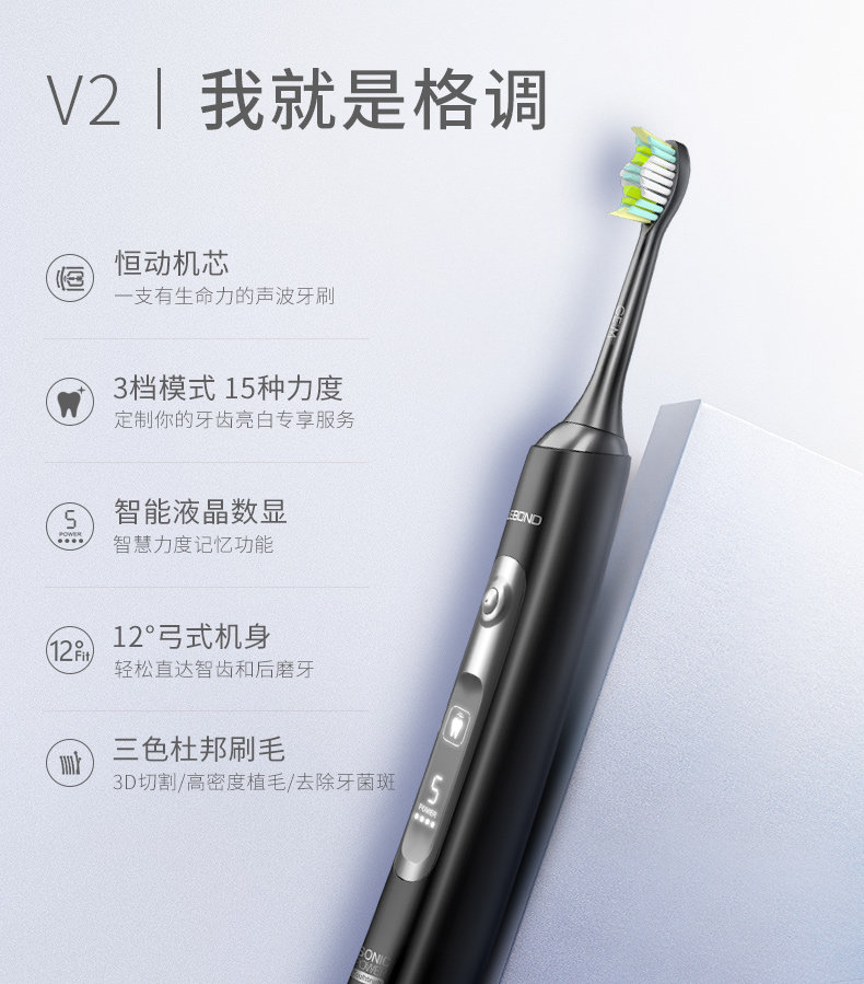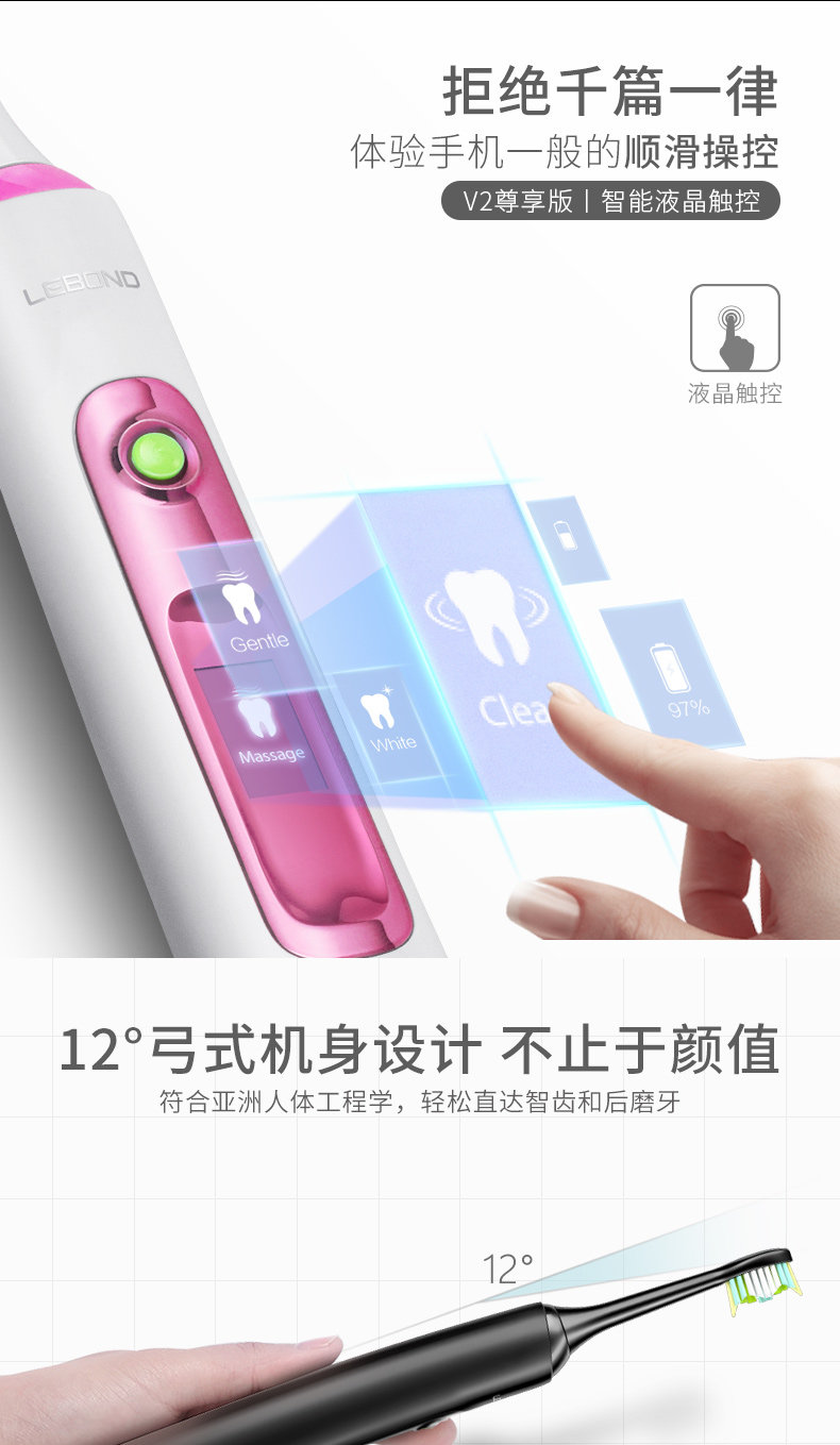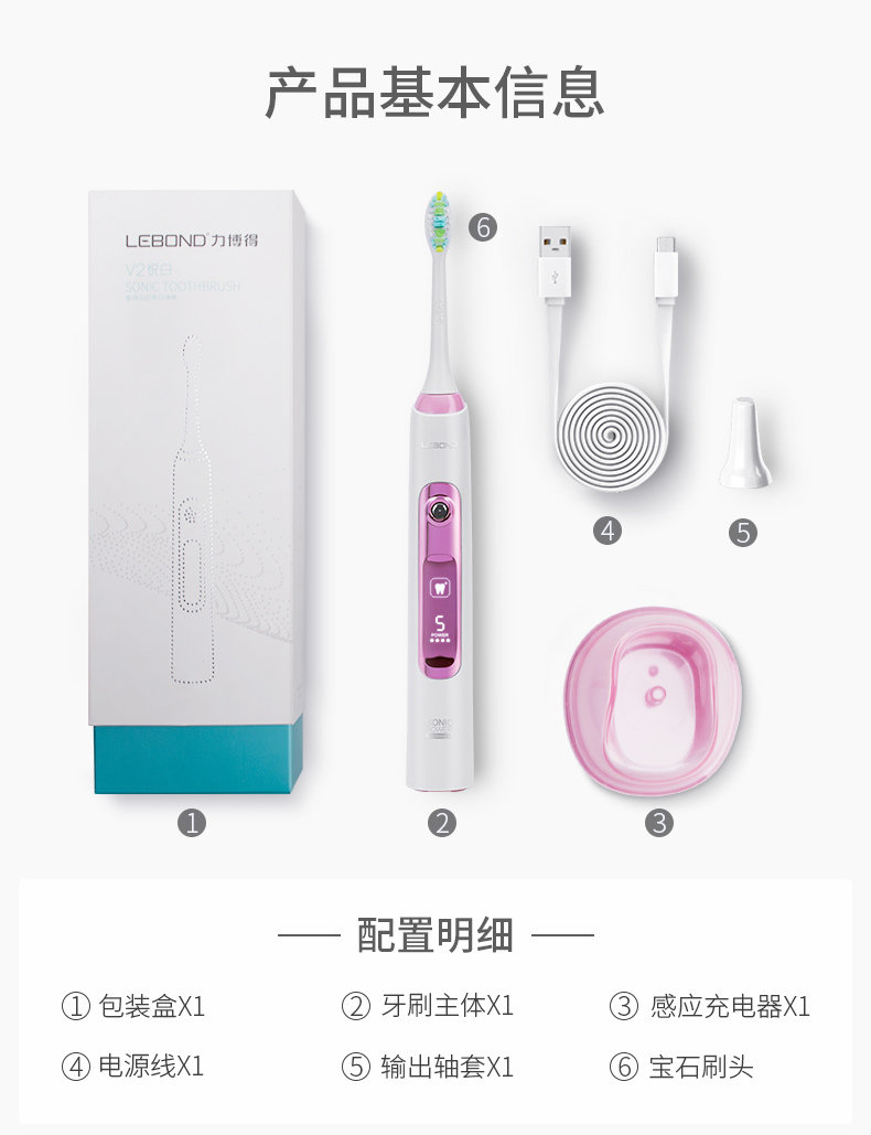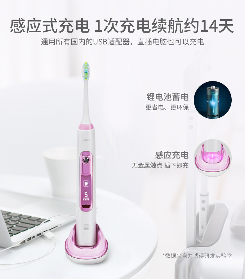 力博得智能声波电动牙刷V2成人款充电式软毛美白家用情侣自动牙刷