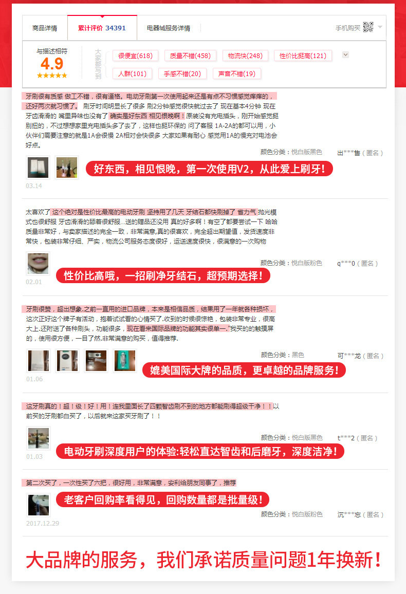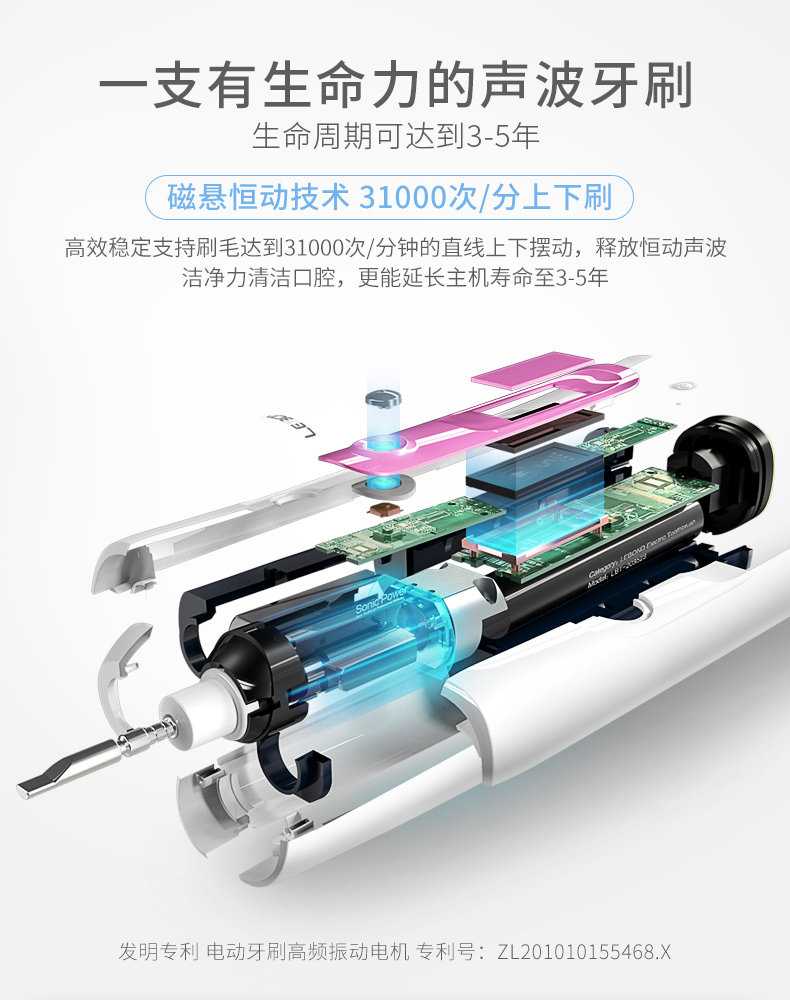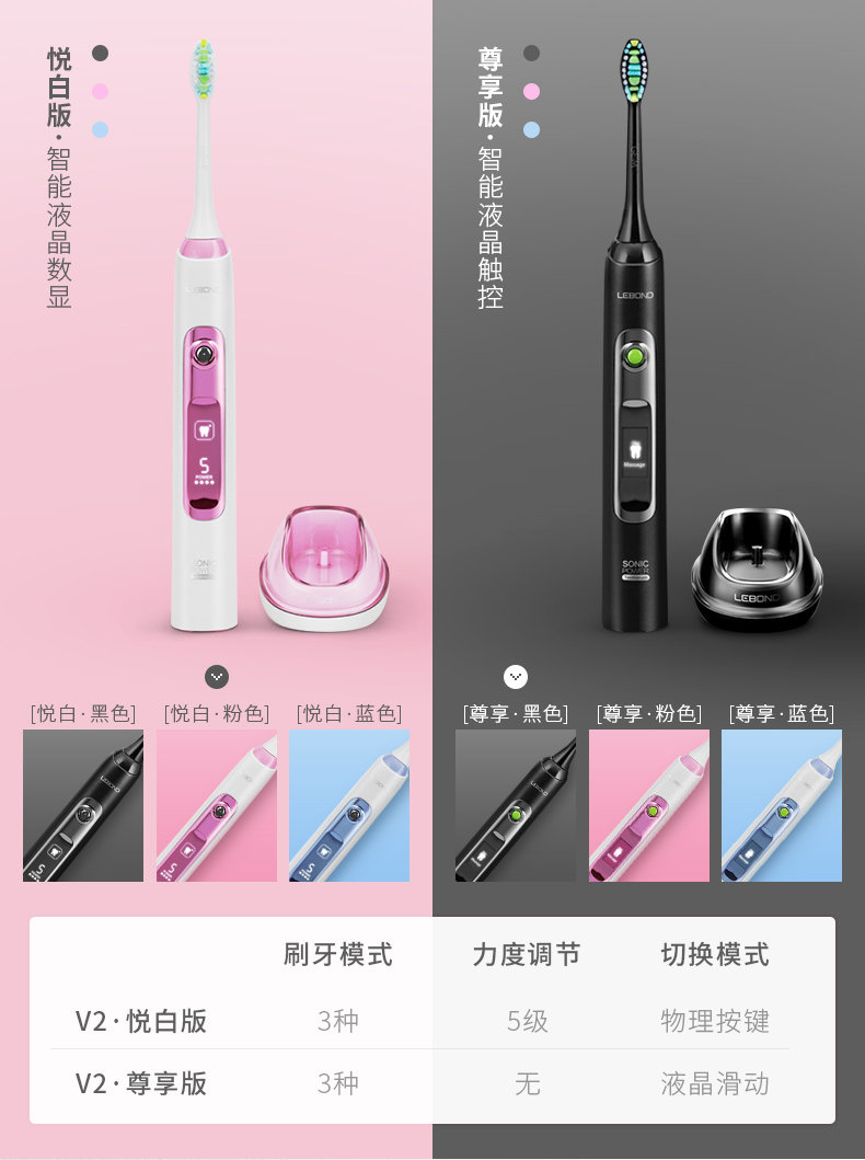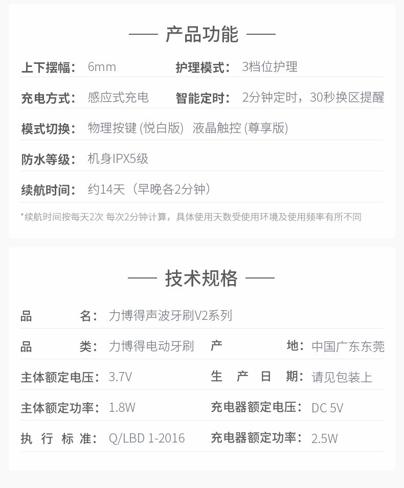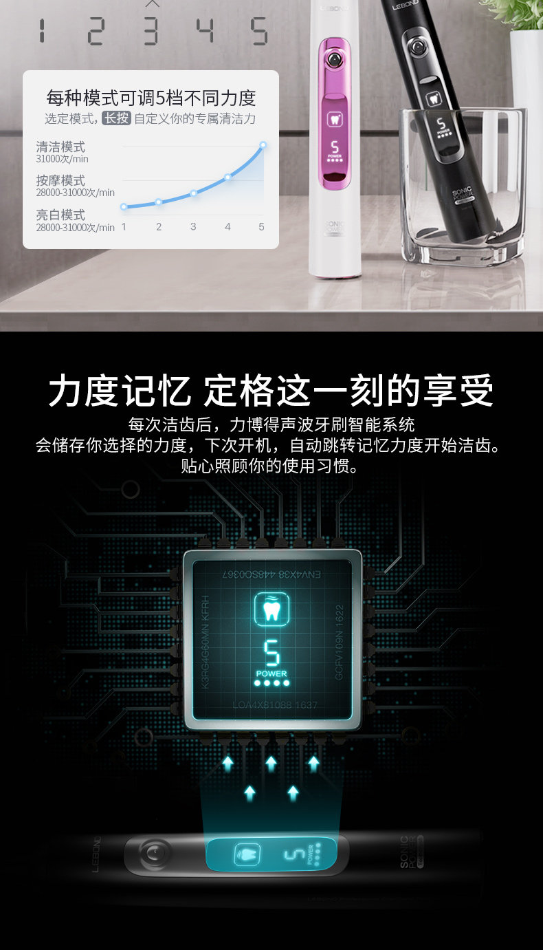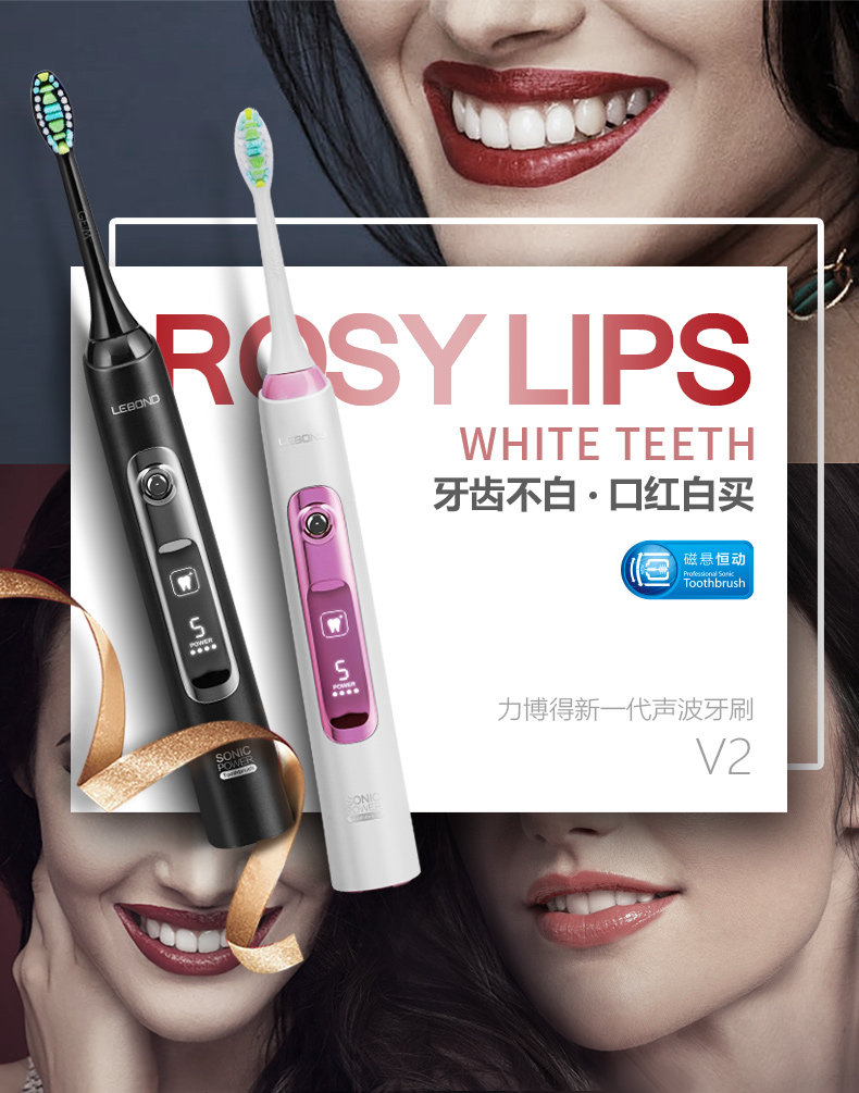 力博得智能声波电动牙刷V2成人款充电式软毛美白家用情侣自动牙刷