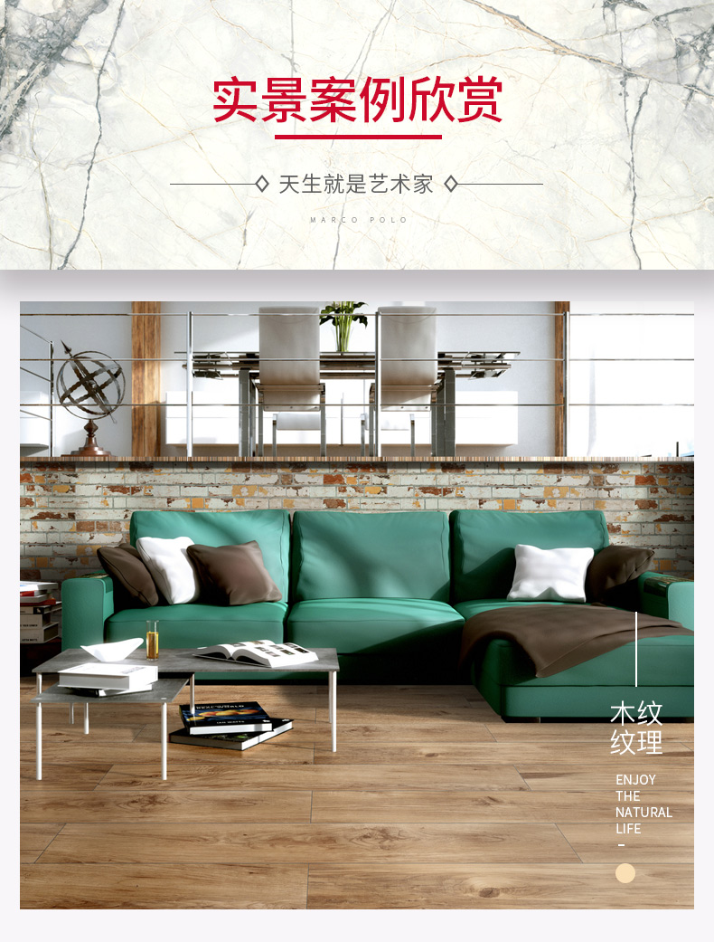 马可波罗瓷砖 客厅卧室仿实木纹地板砖 特权定金 厨卫阳台墙砖