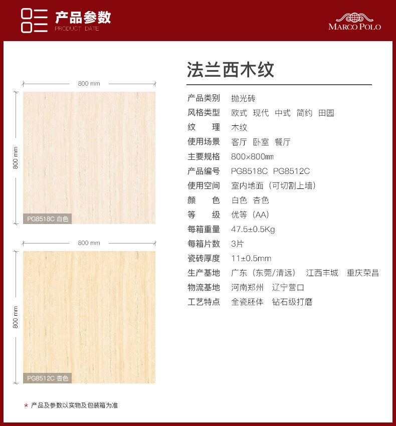 马可波罗瓷砖 客厅卧室仿实木纹地板砖 特权定金 厨卫阳台墙砖