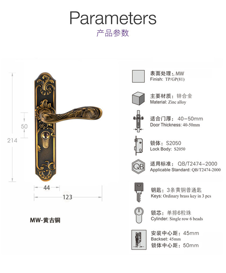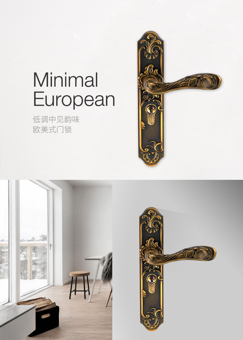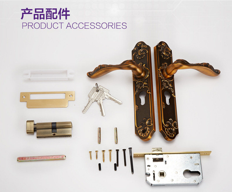 雅洁欧式室内门锁 卧室房门锁户内门锁防盗门锁 AS2051A-HM7265