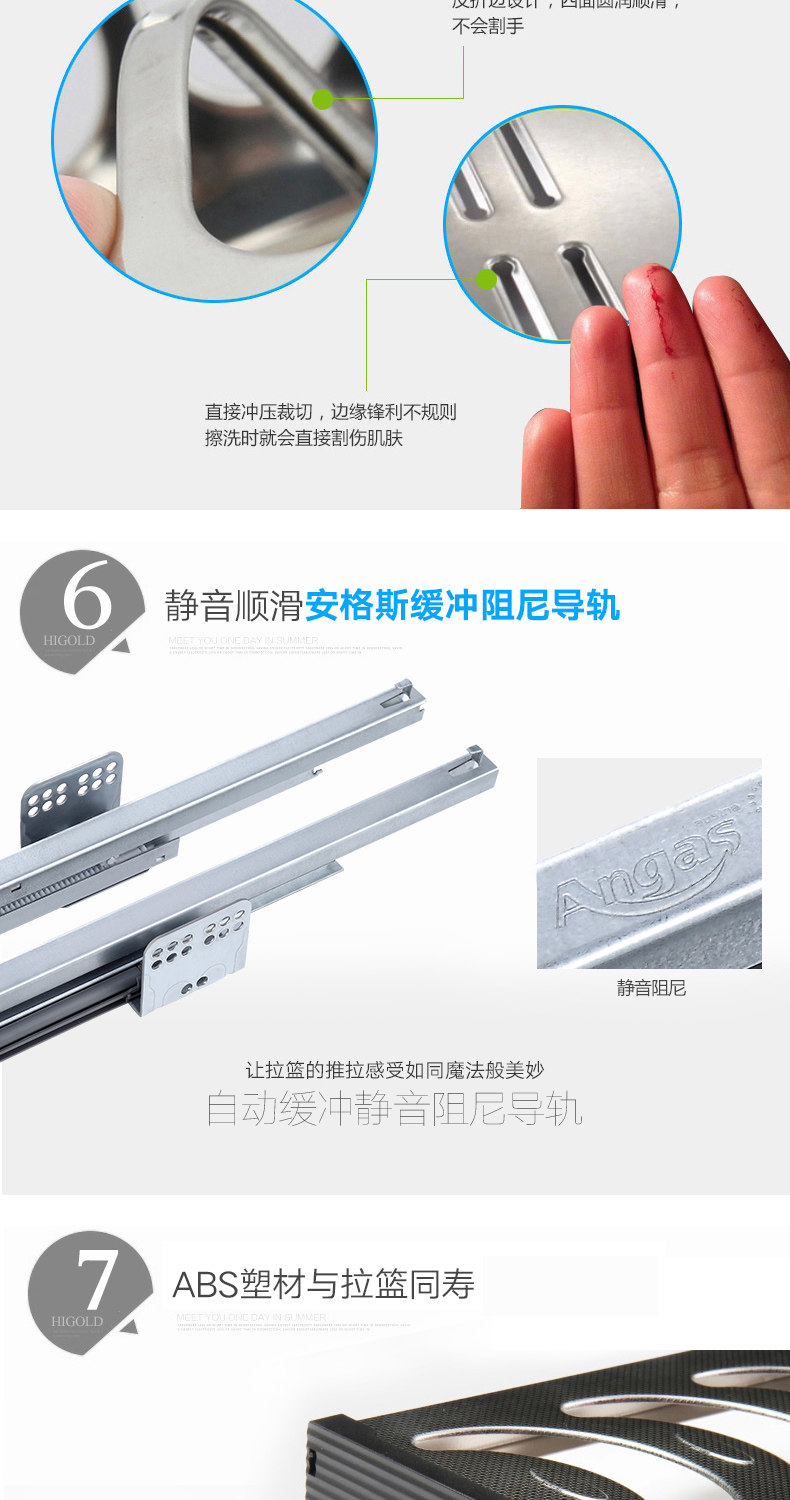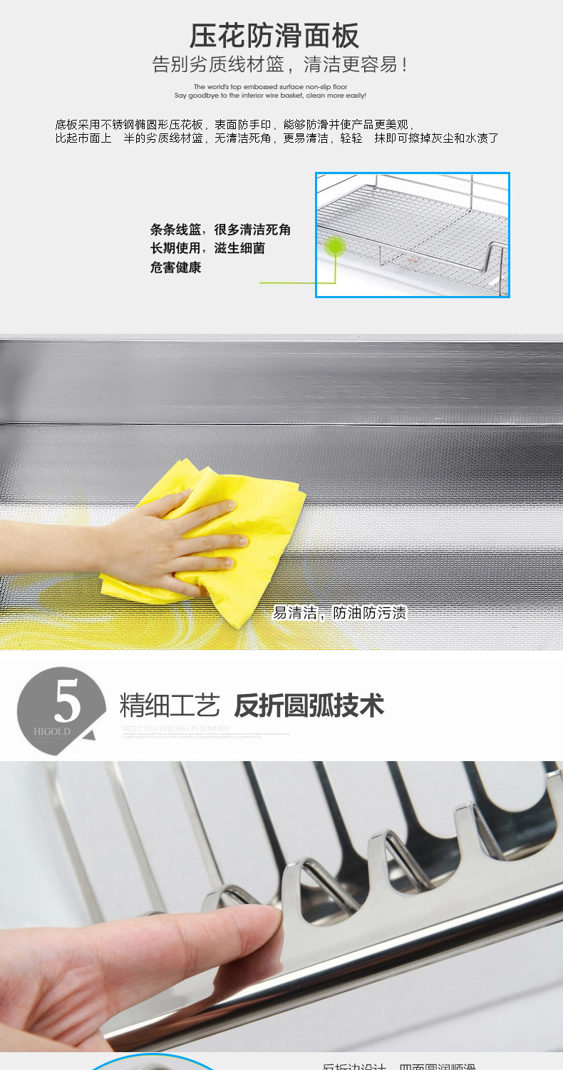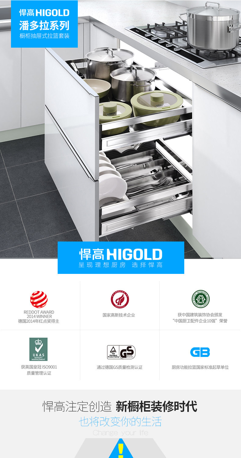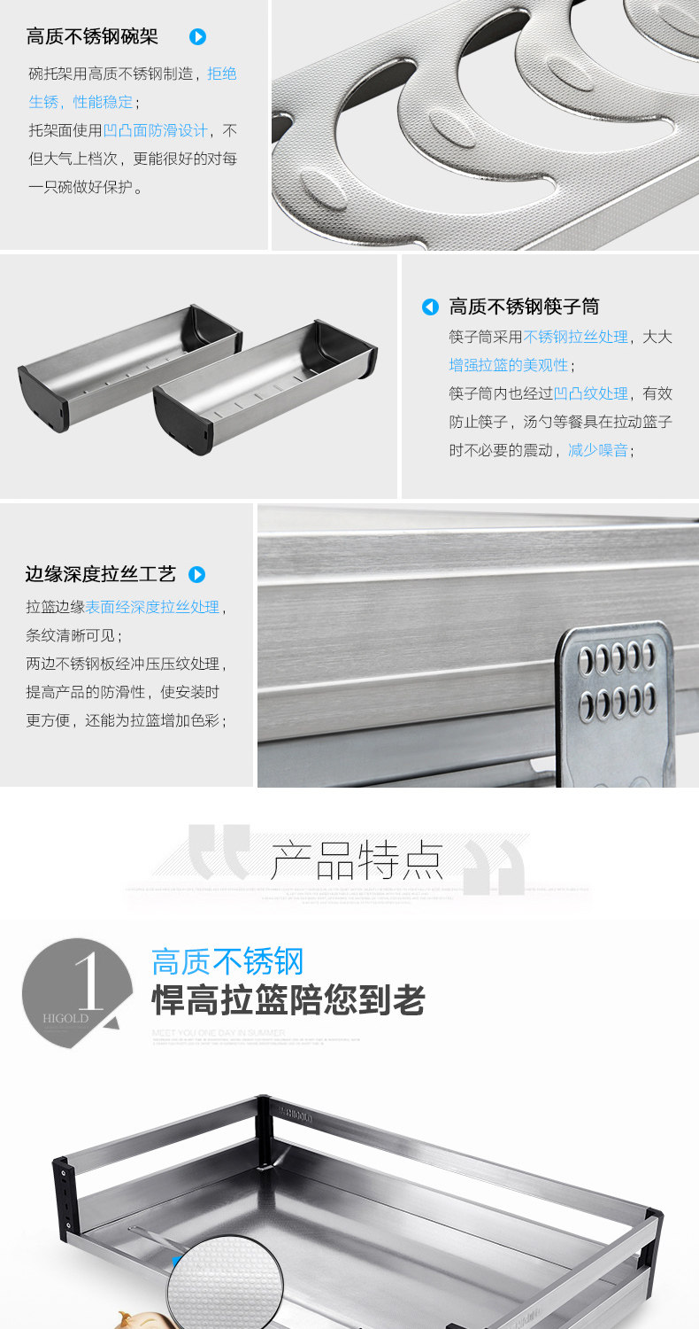 HIGOLD/悍高 升降橱柜拉篮碗篮调味篮双层厨房拉篮整体拉篮