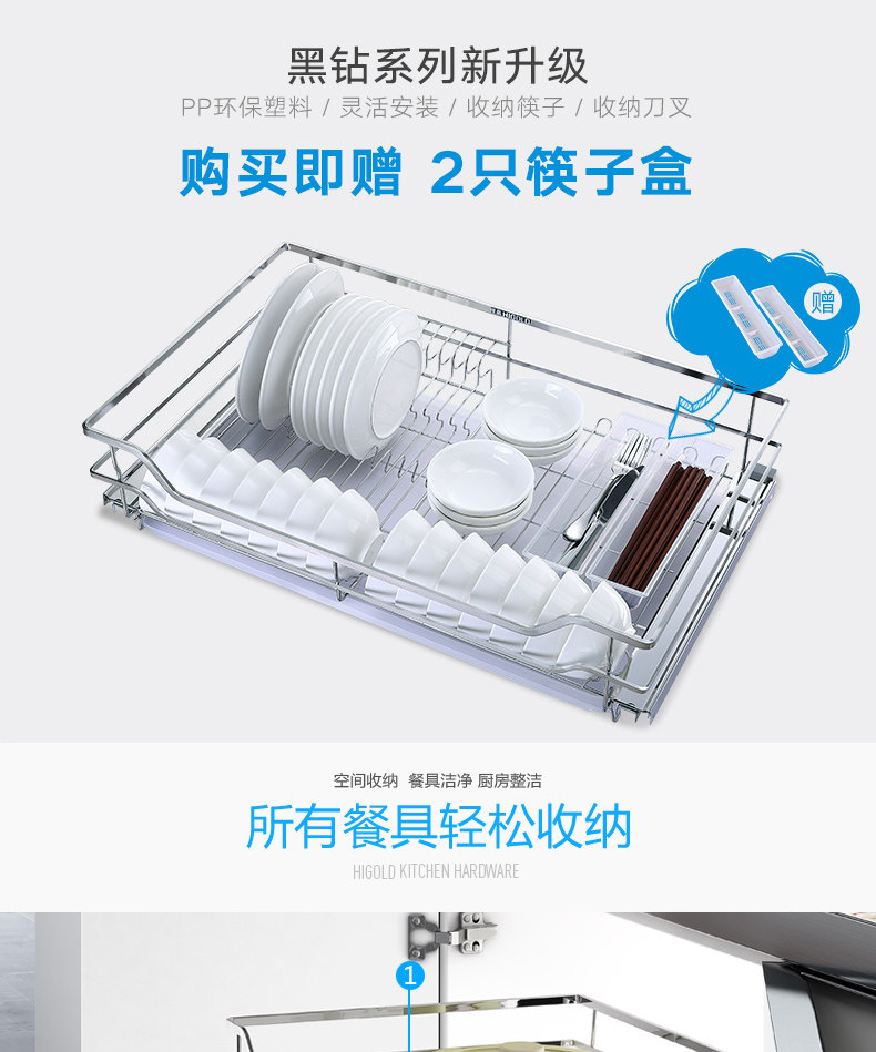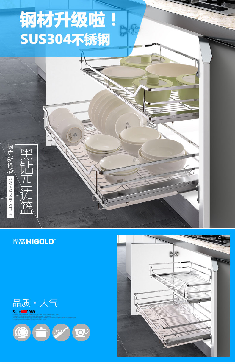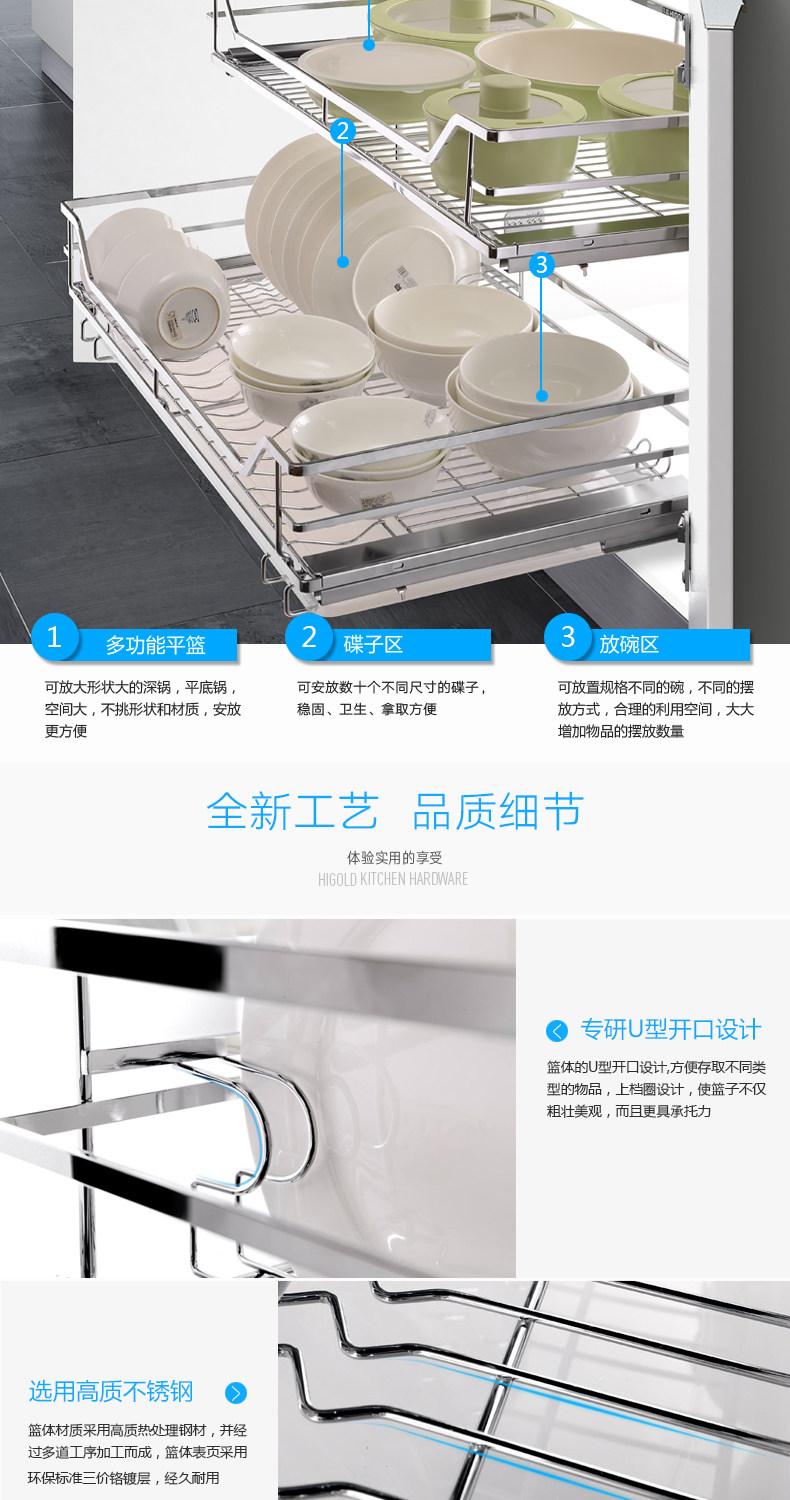 HIGOLD/悍高 升降橱柜拉篮碗篮调味篮双层厨房拉篮整体拉篮