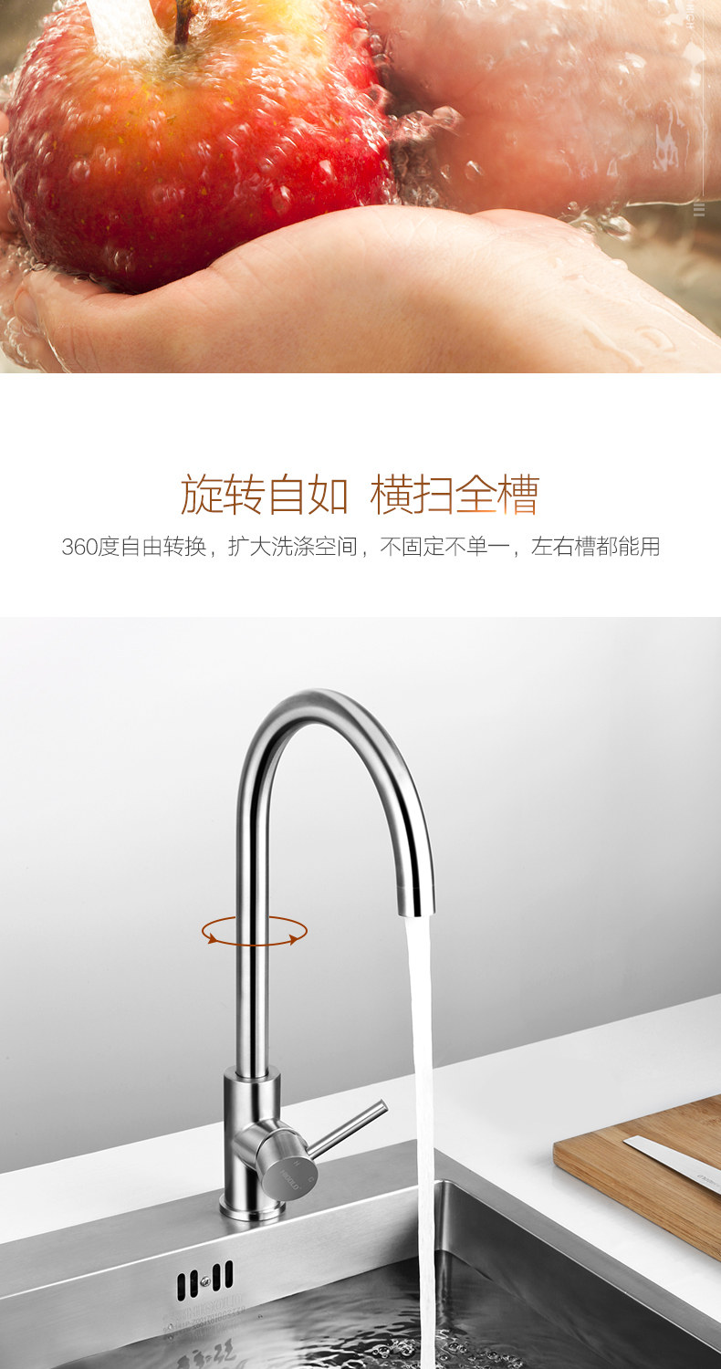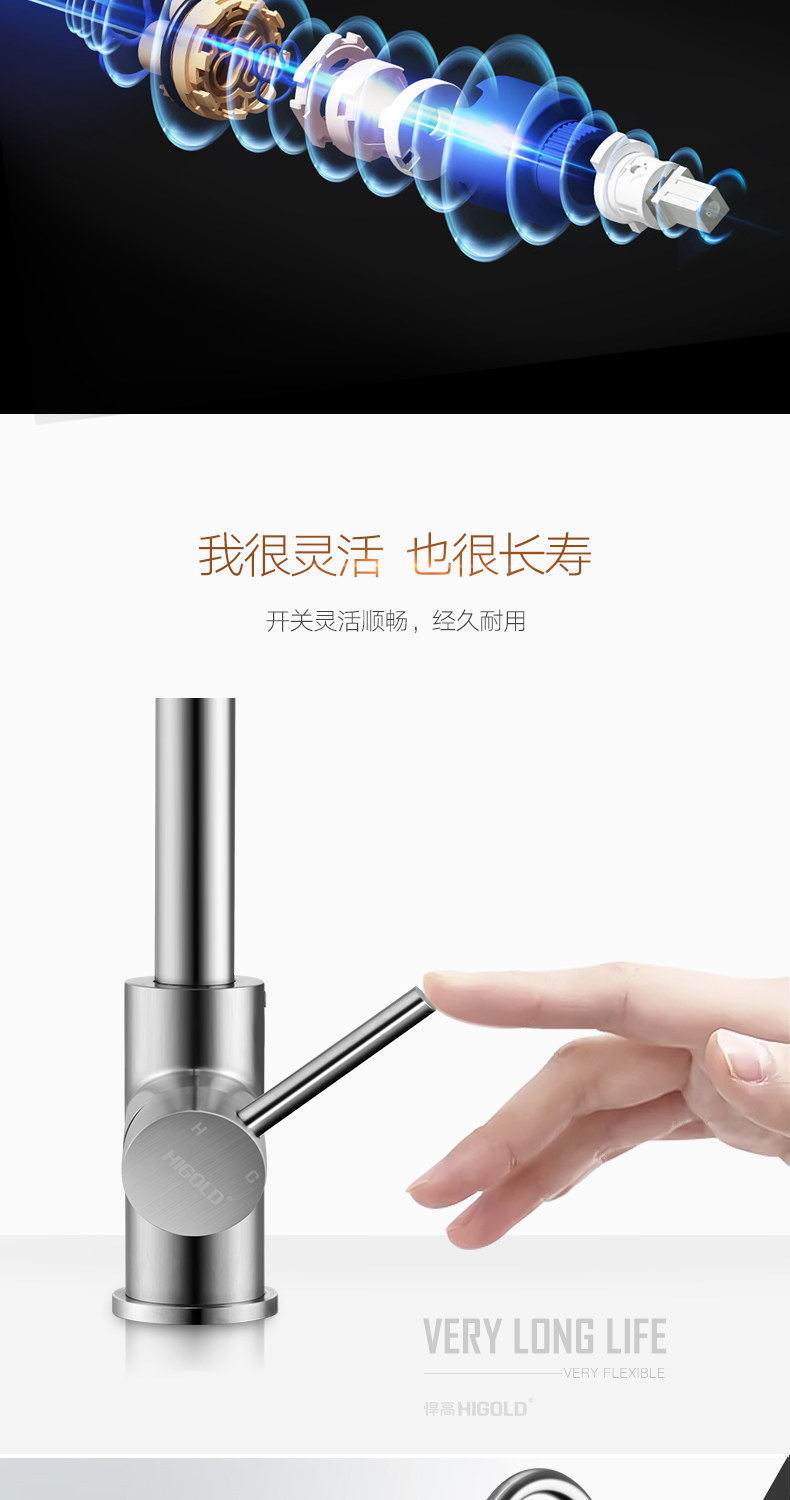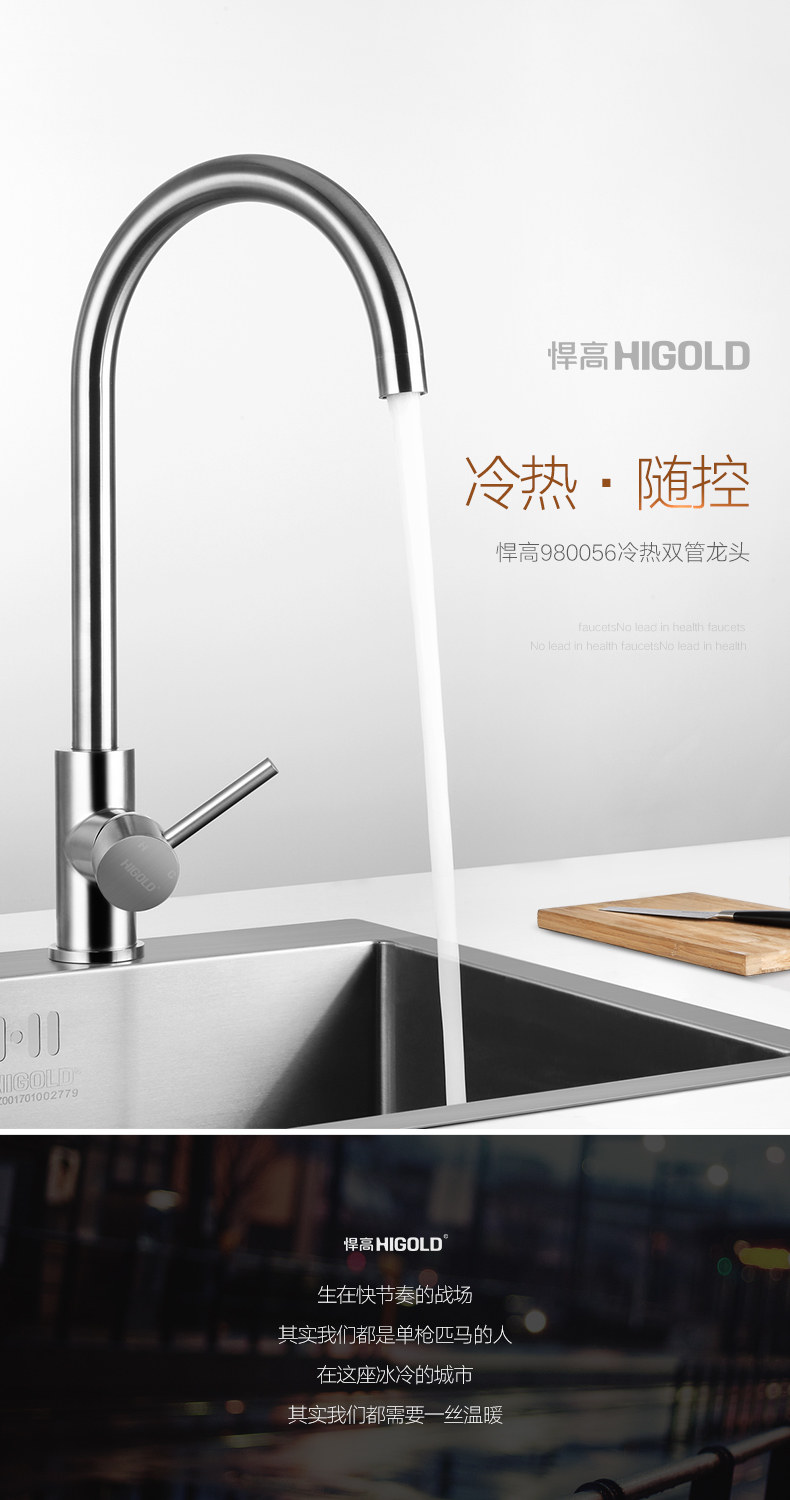 HIGOLD/悍高 厨房水龙头洗菜盆冷热全304不锈钢拉丝无铅水槽龙头