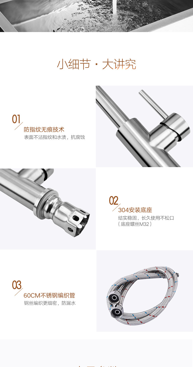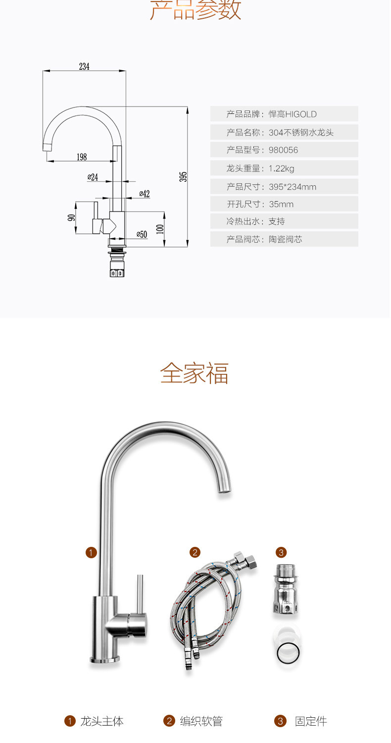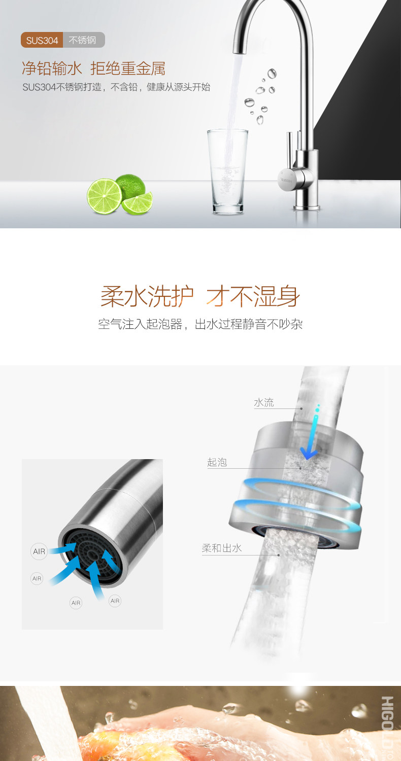 HIGOLD/悍高 厨房水龙头洗菜盆冷热全304不锈钢拉丝无铅水槽龙头