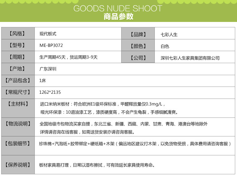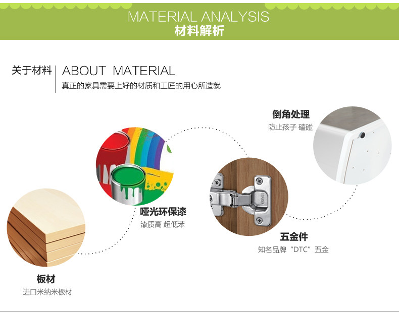 七彩人生儿童板木床头柜青少年环保储物家具 田园床边柜