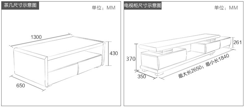 | 【名 称】 | 简约客厅家具 | 【型 号】 | TB-QX009茶几+地柜 |