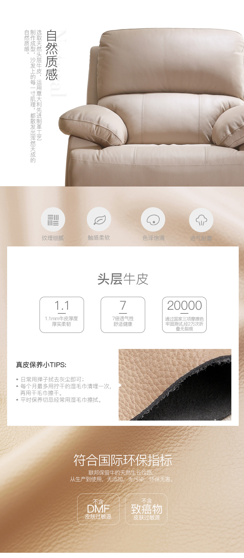 | 面料说明 | 接触面头层黄牛皮 | 填充物 | 高密度海绵 | 是否可拆洗 | 否 |