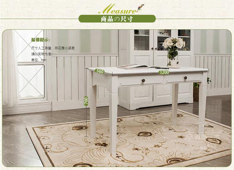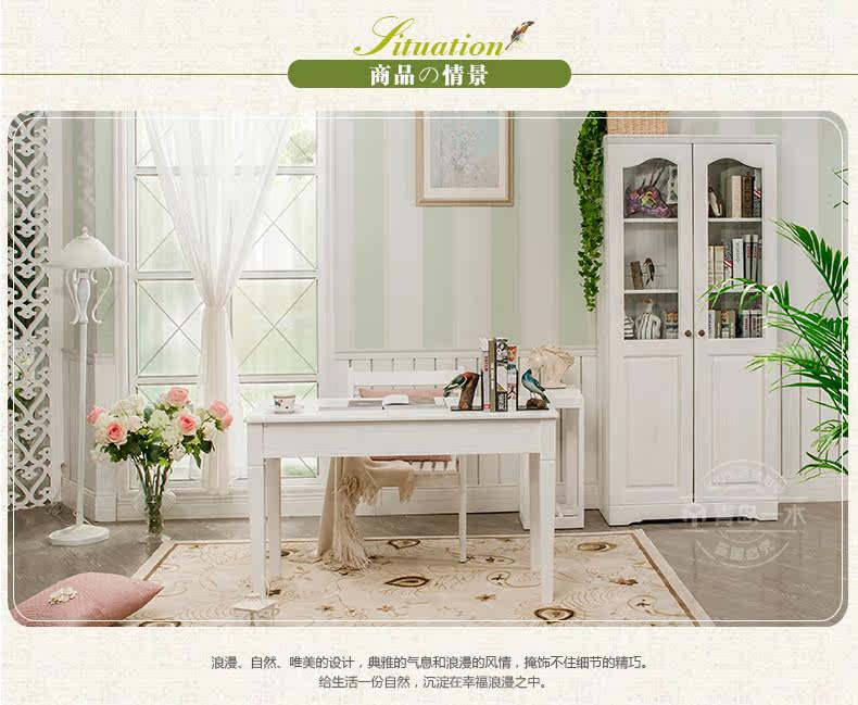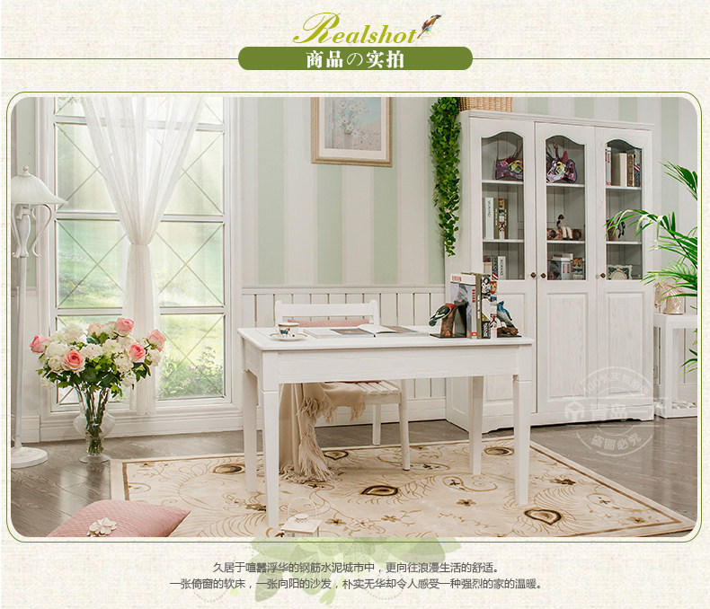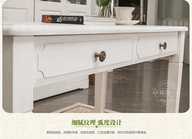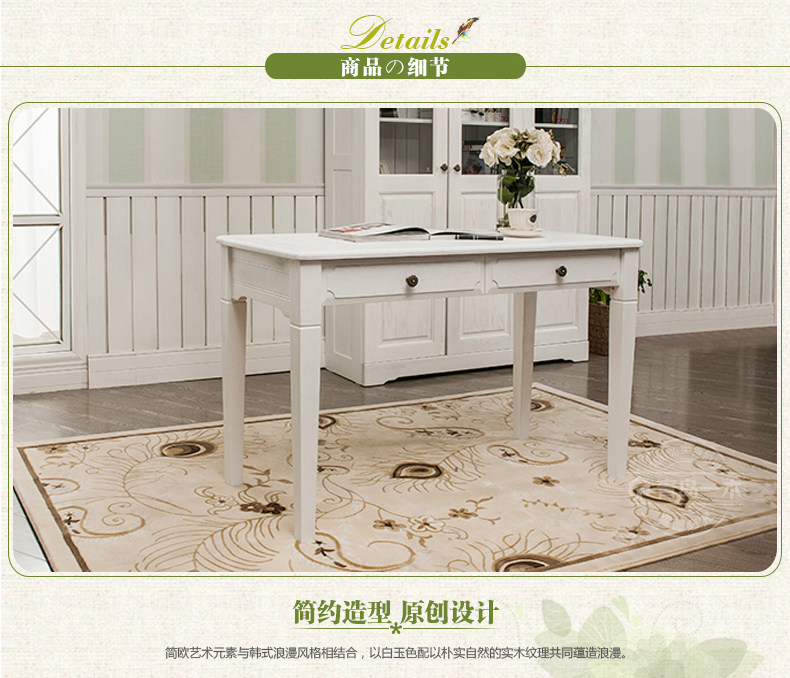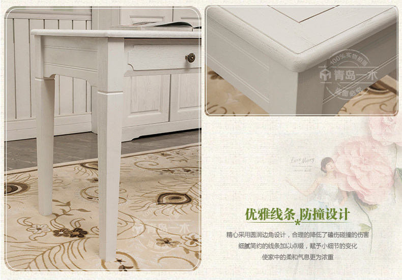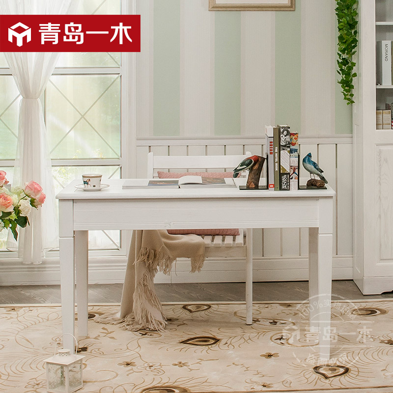 青岛一木白色实木书桌1.2米电脑桌欧式写字台 韩式田园橡木学习桌