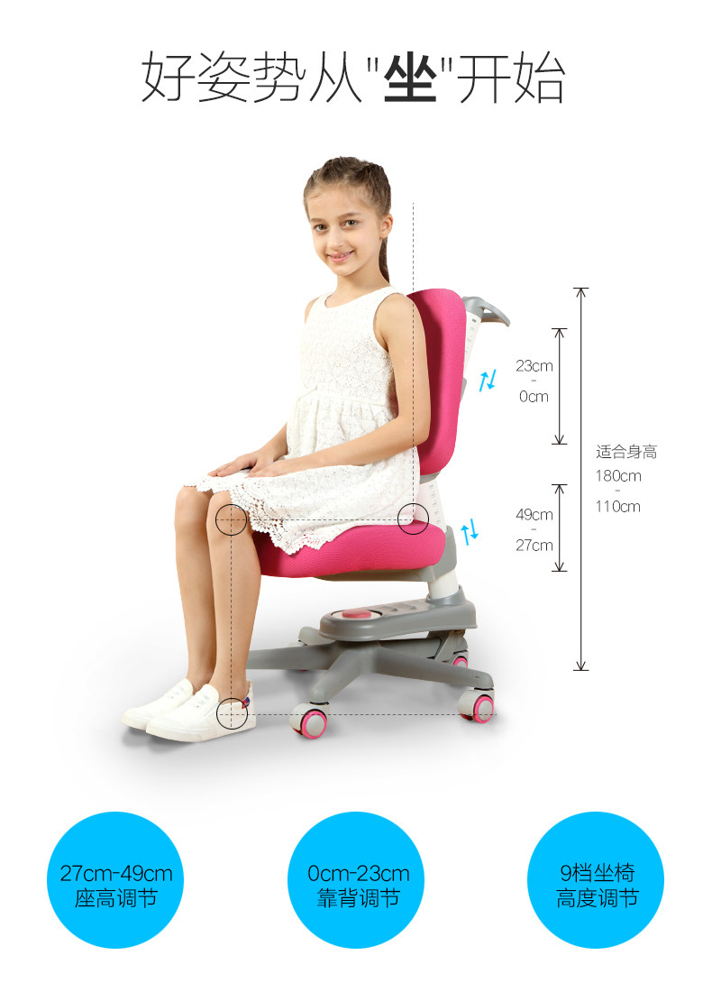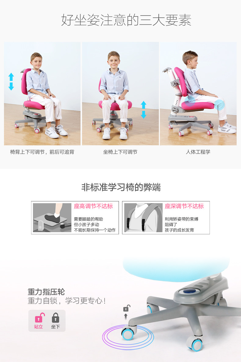 爱学习01自由升降学习椅学生椅子升降工学靠背儿童椅 书桌电脑椅