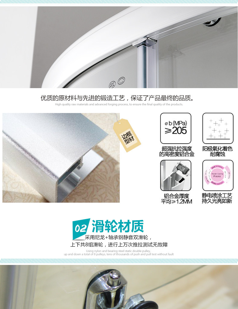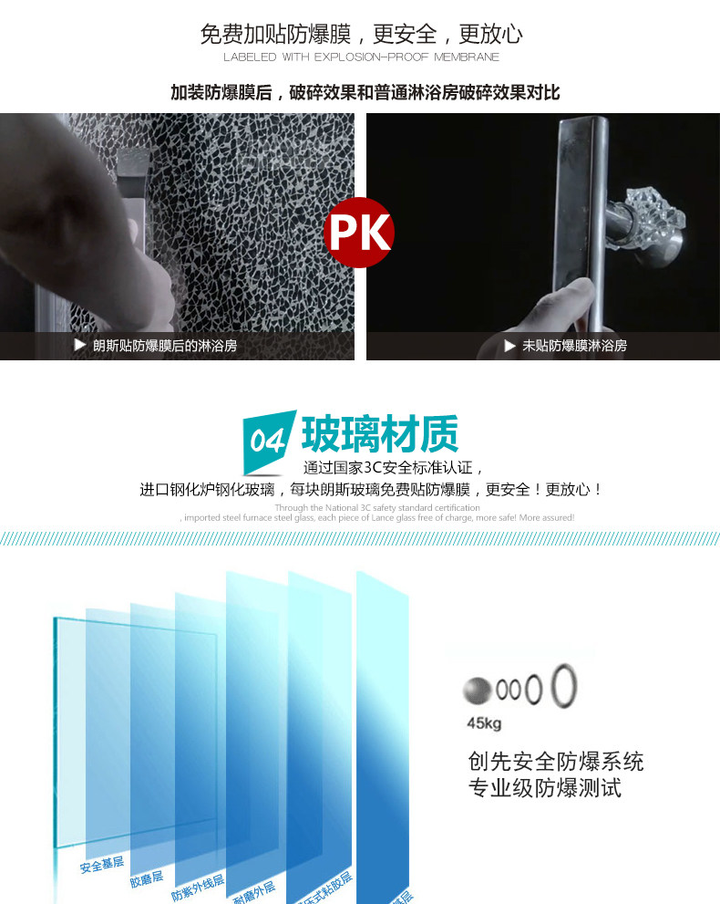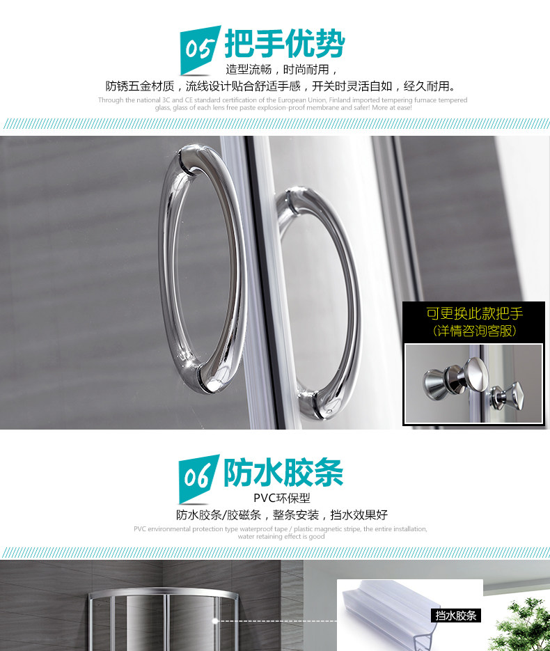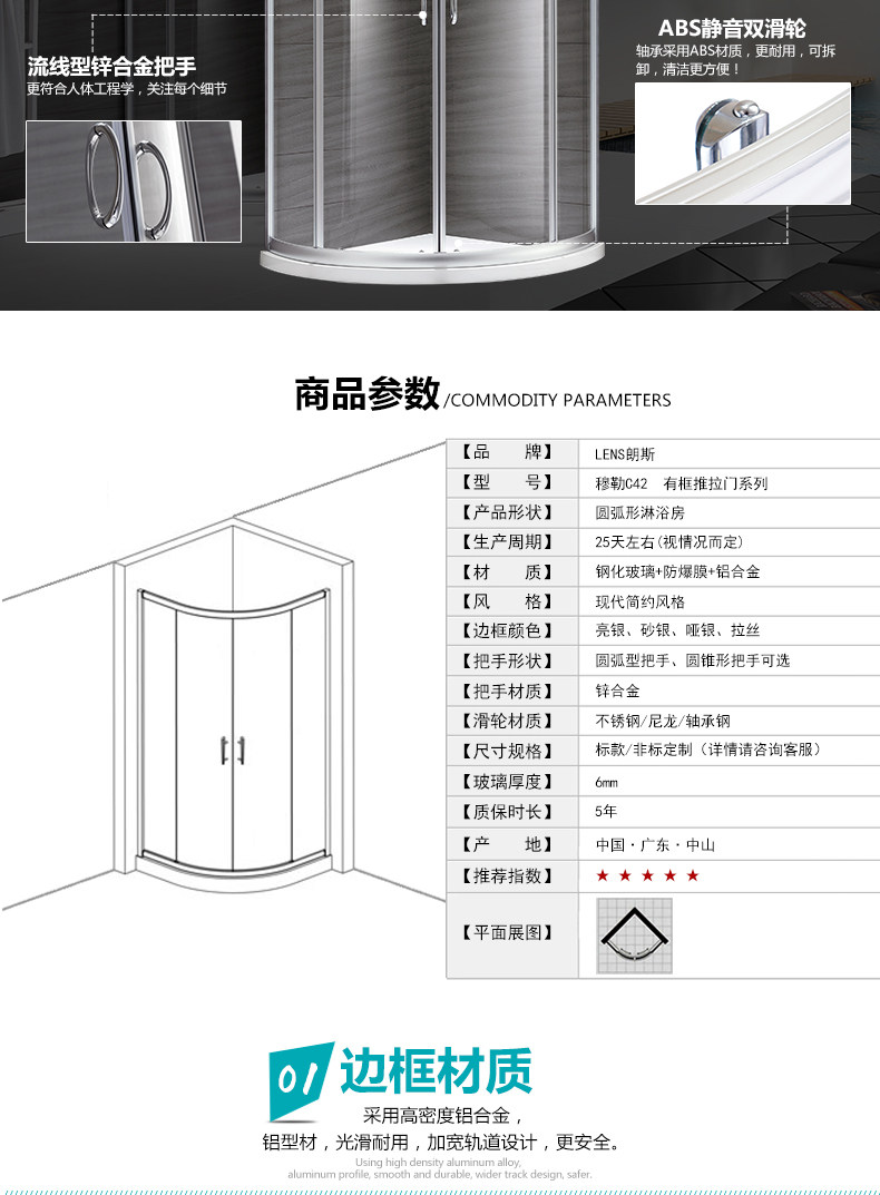 朗斯淋浴房法贝P31整体钢化玻璃配件隔断简易底盘拉手挡水条卫浴