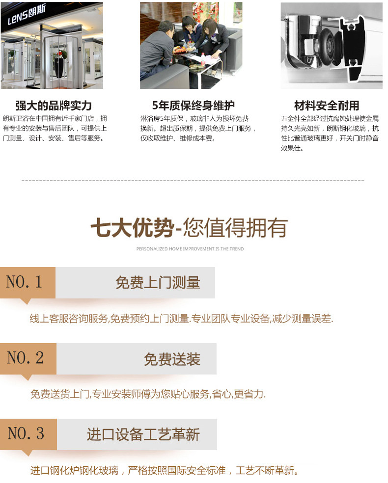 朗斯淋浴房蒂娜系列浴室隔断一字型 非标定制 淋浴房整体