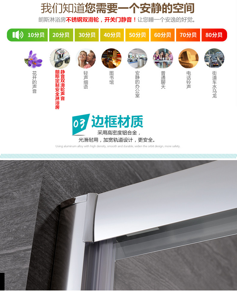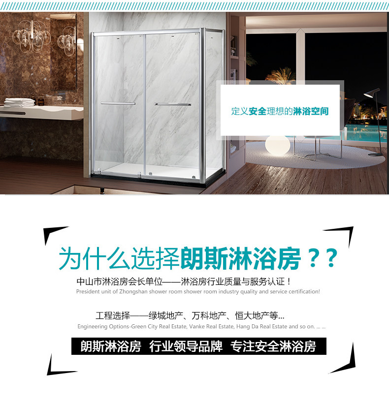 朗斯淋浴房蒂娜系列浴室隔断一字型 非标定制 淋浴房整体
