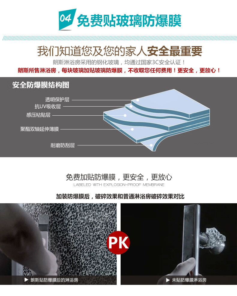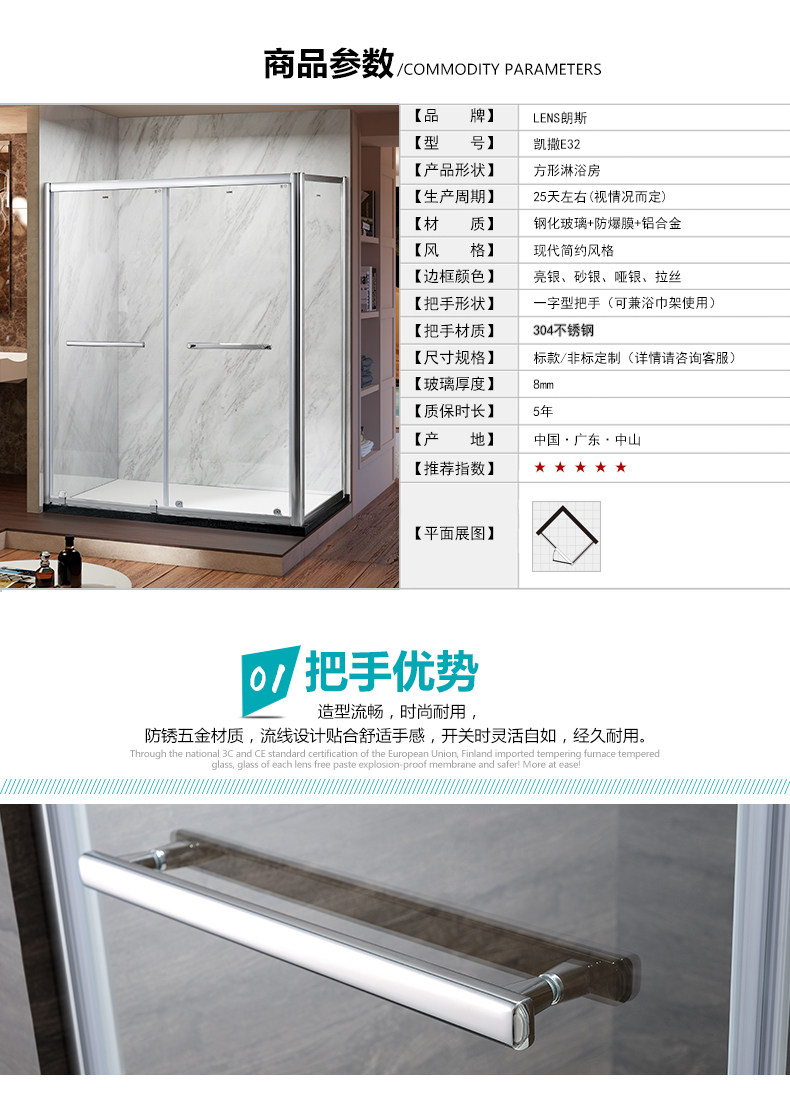 朗斯淋浴房法贝P31整体钢化玻璃配件隔断简易底盘拉手挡水条卫浴