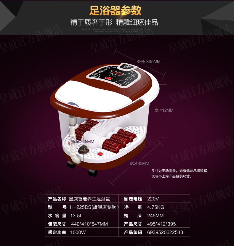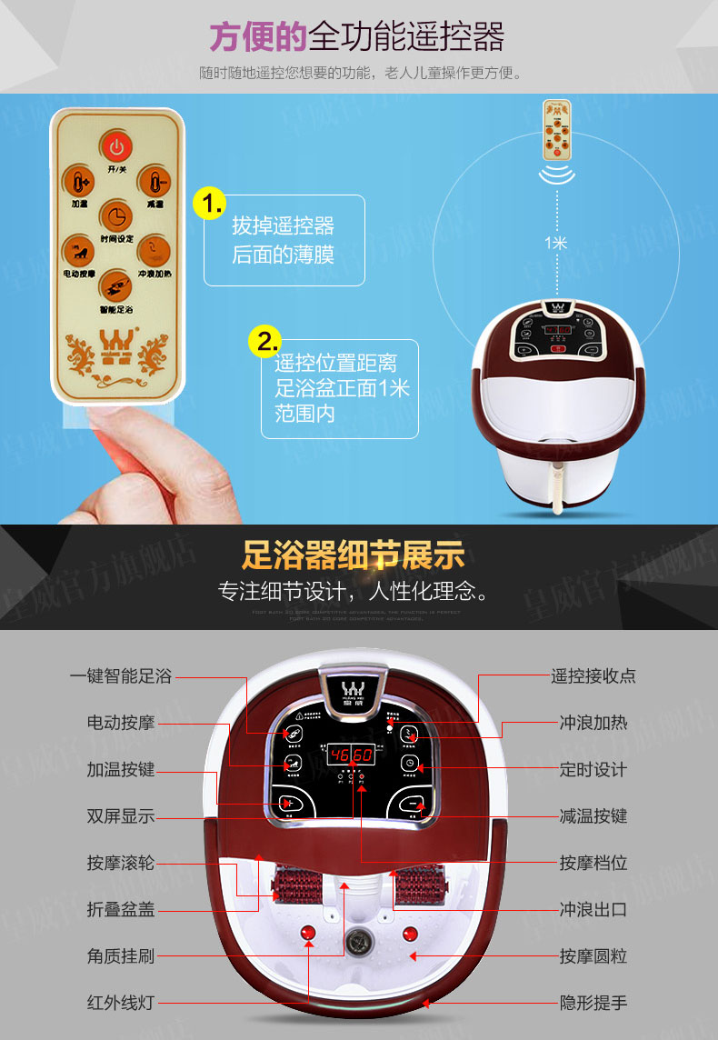皇威足浴盆自动加热泡脚盆自助按摩洗脚盆自动加热恒温家用足浴器