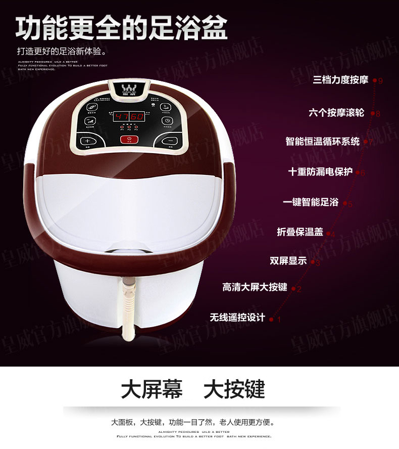 皇威实用加热按摩泡脚盆恒温洗脚盆电动深桶足浴器足疗盆