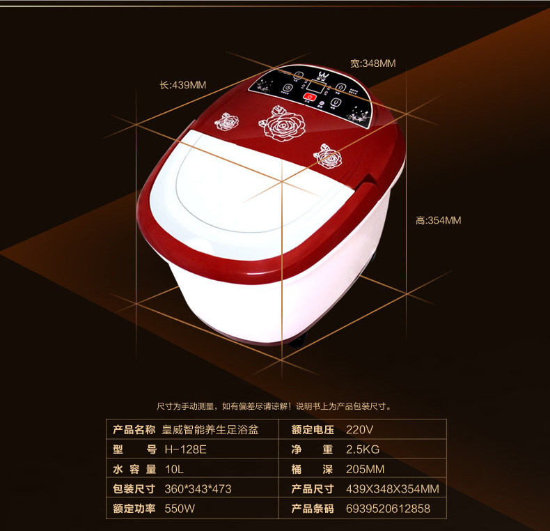 以下是皇威足浴盆自动加热泡脚盆自助按摩洗脚盆自动加热恒温家用足浴器的详细说明,厂家介绍,求购联系信息,最终解释权归宁波皇威健康科技有限公司所有
