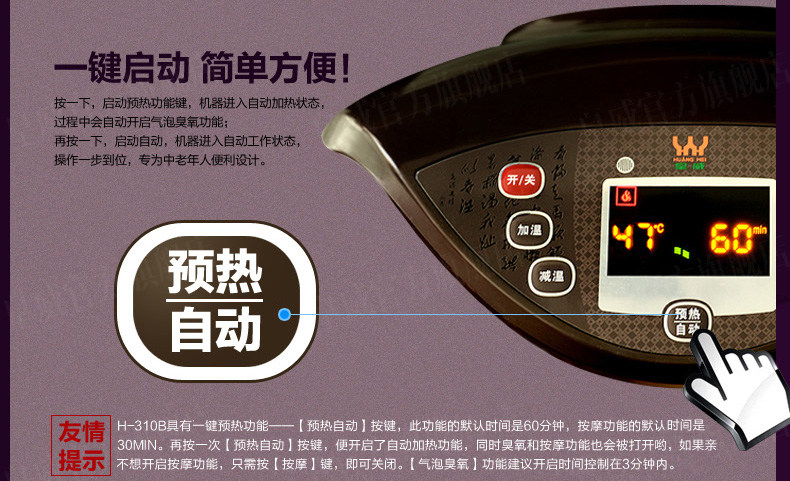 皇威H-310B 全自动按摩足浴盆 电动按摩足浴器3D加热电动泡脚盆