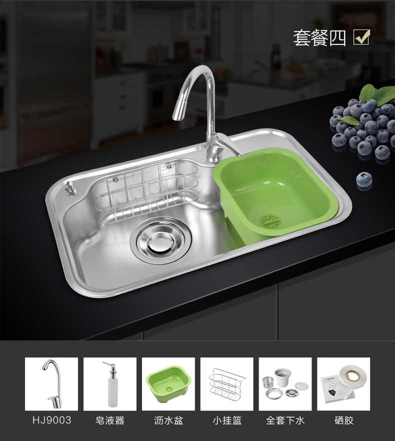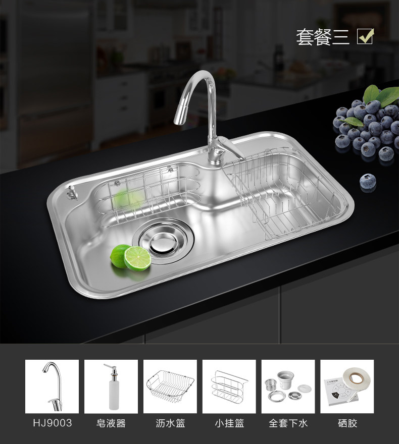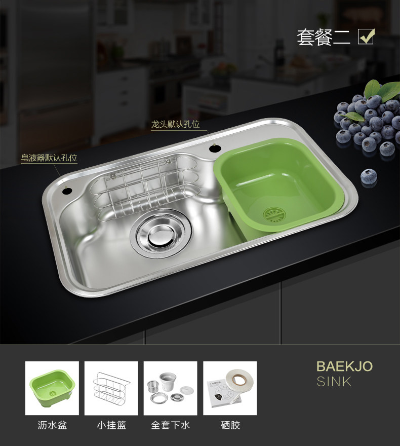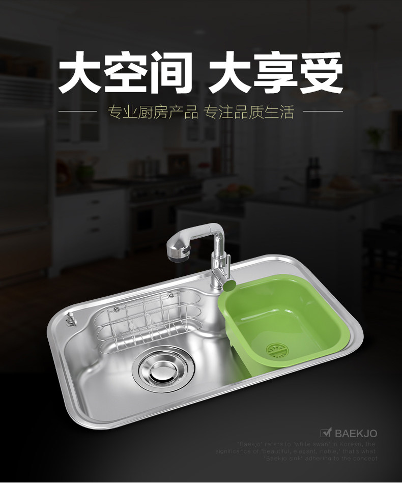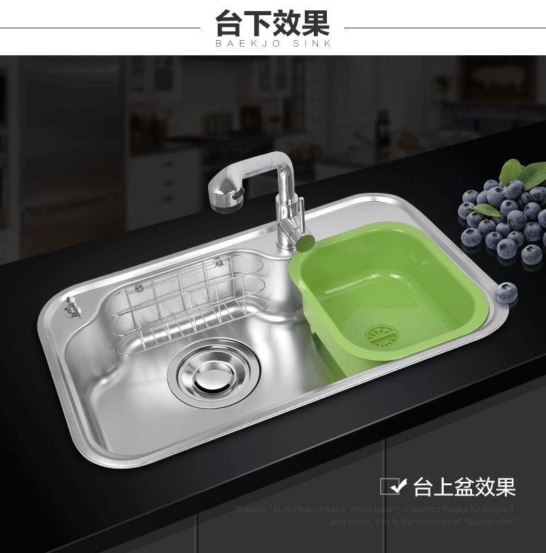 韩国白鸟水槽 304不锈钢单槽套餐 厨房洗菜盆OS800正品