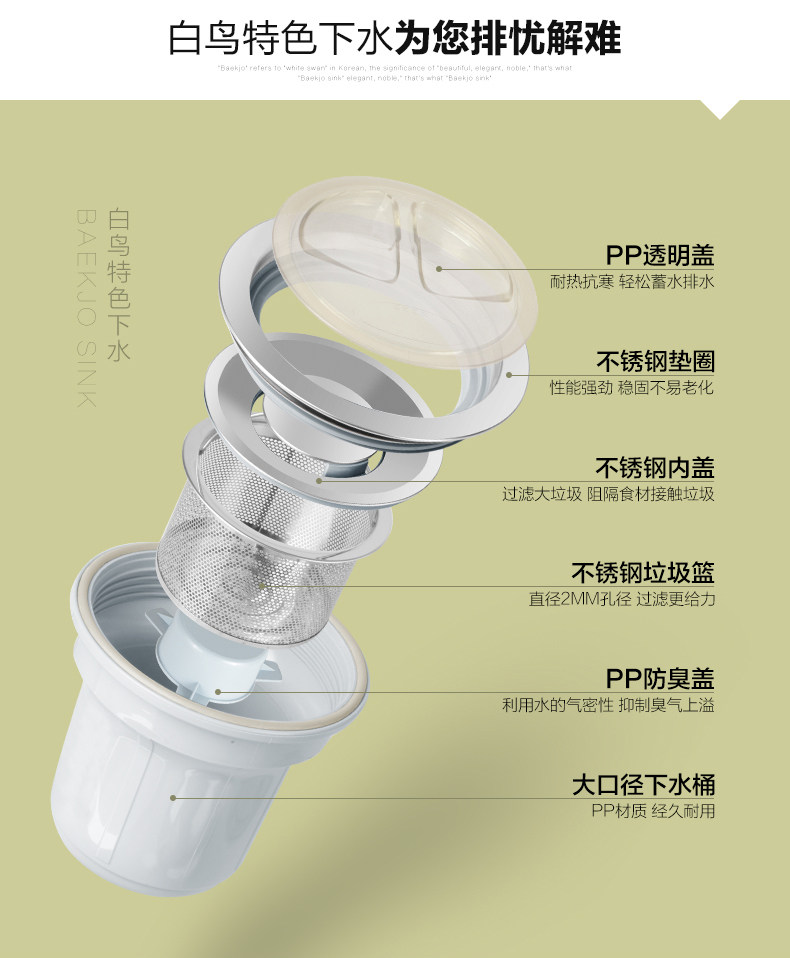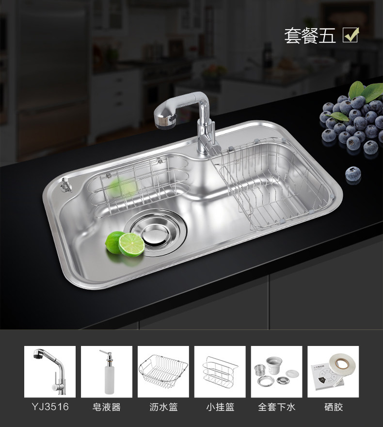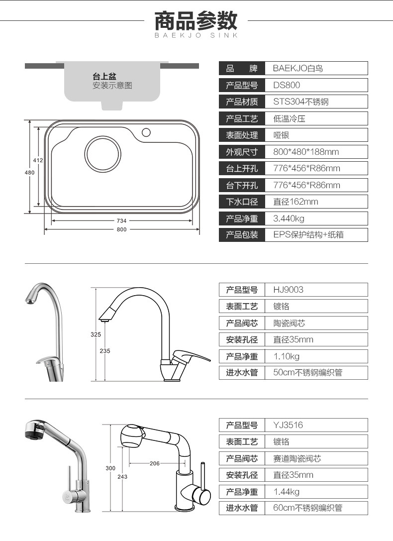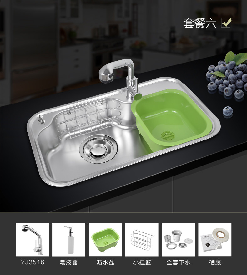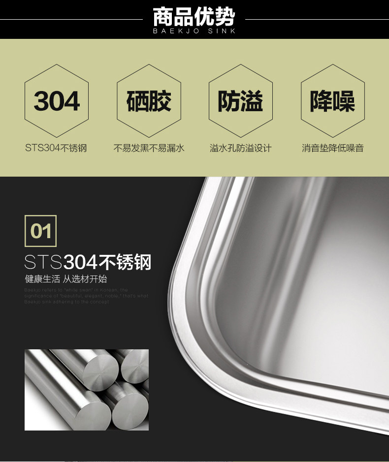 韩国白鸟水槽 304不锈钢单槽套餐 厨房洗菜盆OS800正品