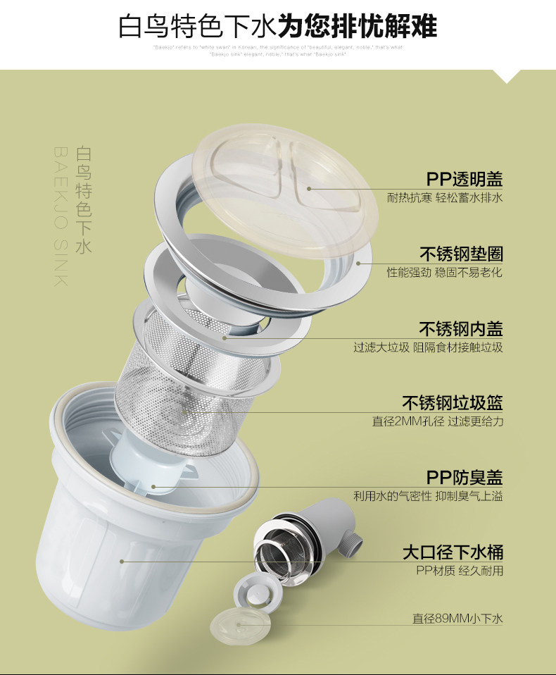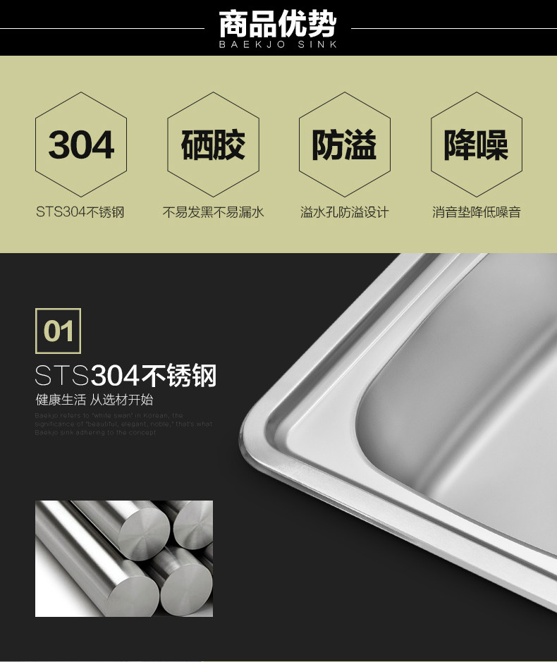 韩国白鸟水槽 304不锈钢单槽套餐 厨房洗菜盆OS800正品