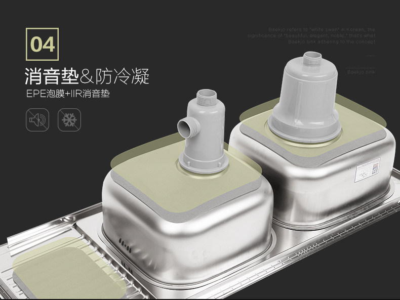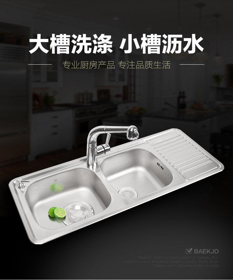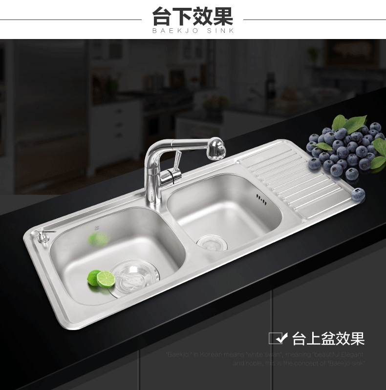 原装进口 韩国白鸟水槽 304不锈钢 超大双槽 多功能沥水板ID1100