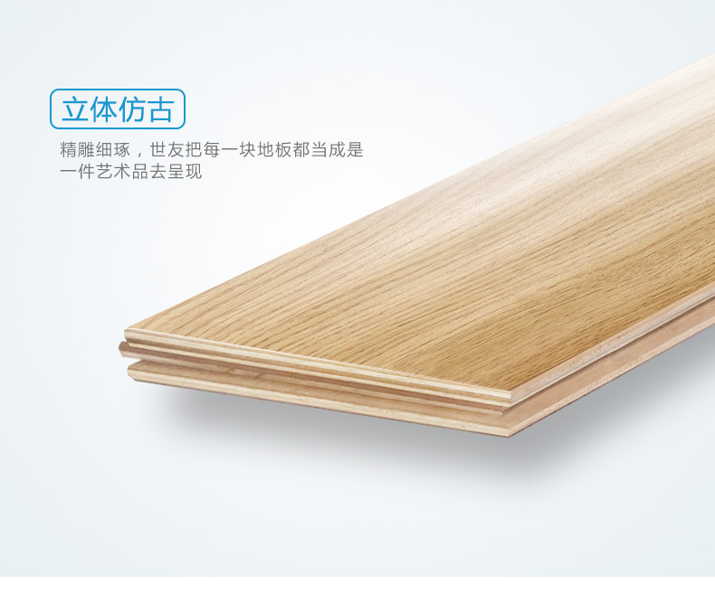 世友实木复合地板 浅色橡木纹仿古实木复合多层耐磨抗刮地板