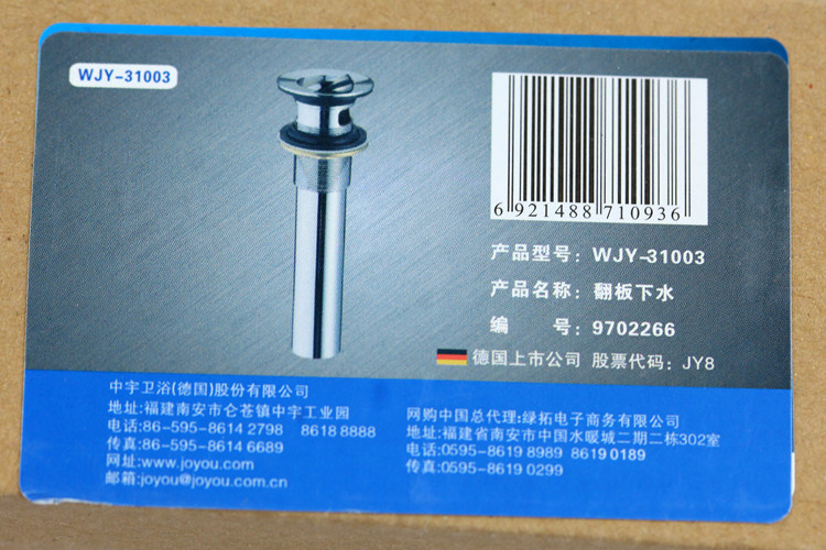JOYOU 中宇卫浴 精铜 翻板 面盆下水器WJY31003去水器