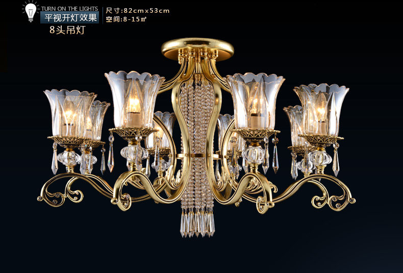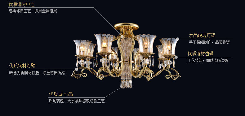 | 光源类型:E14/40W /不带开关/不带光源 适用空间:客厅,卧室,餐厅 适合层高:适用层高2.6-3.0米 材质:优质铜材+K9水晶,灯罩:水晶玻璃 | |||
