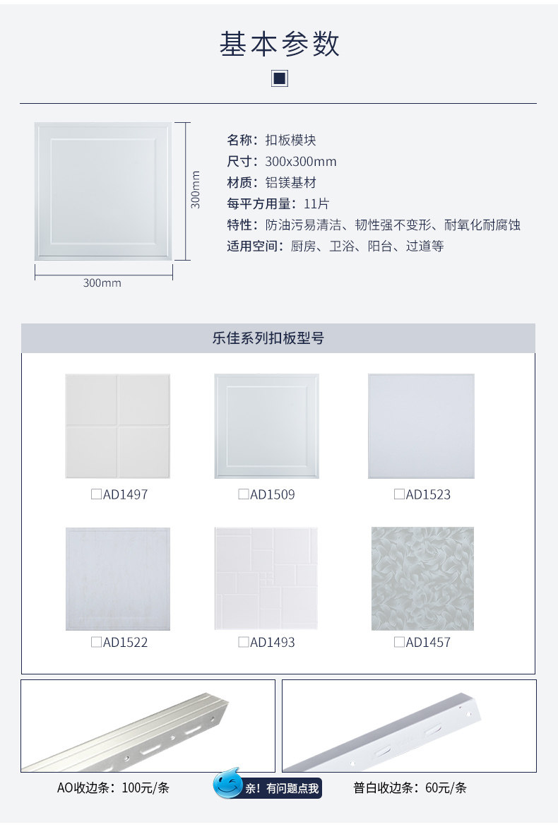 友邦集成吊顶铝扣板 泊系列3代特权订金10抵110元 满5000可用