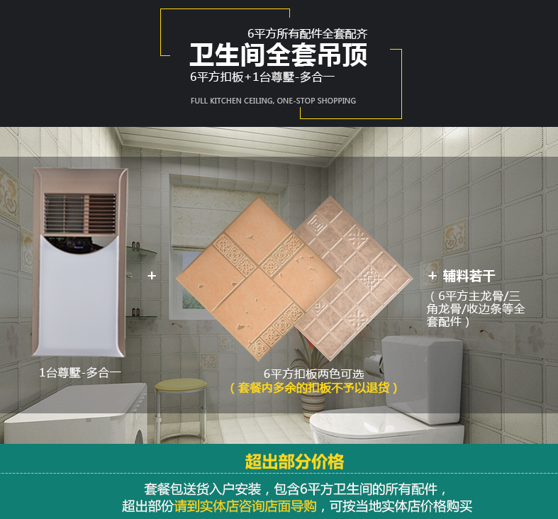 今顶集成吊顶 卫生间全套铝扣板吊顶 含LED灯 浴霸 配件 包安装