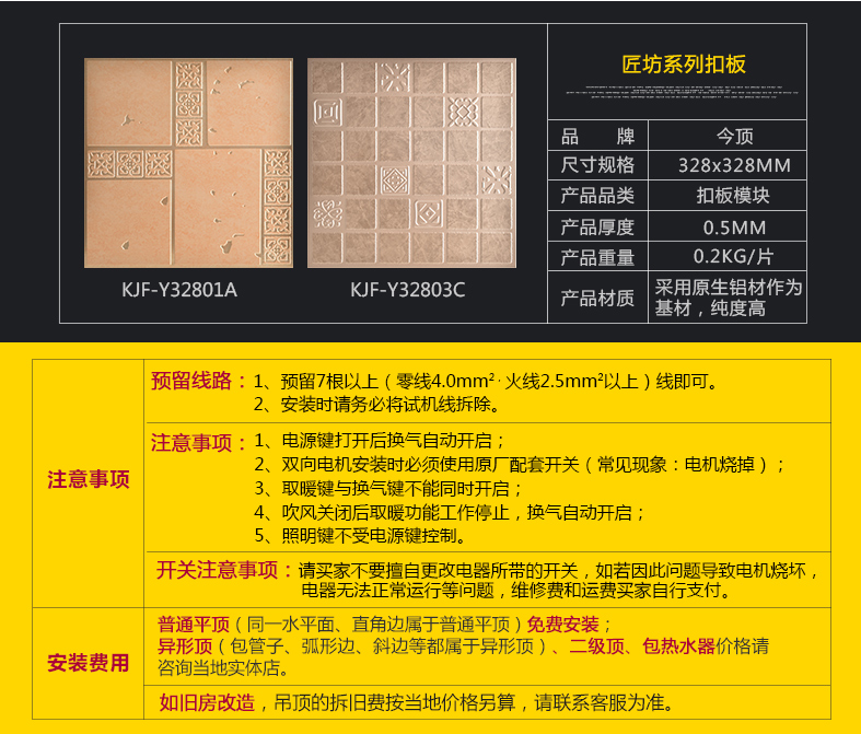 今顶 特权订金 999元/㎡ 点睛系列铝扣板集成吊顶 包安装