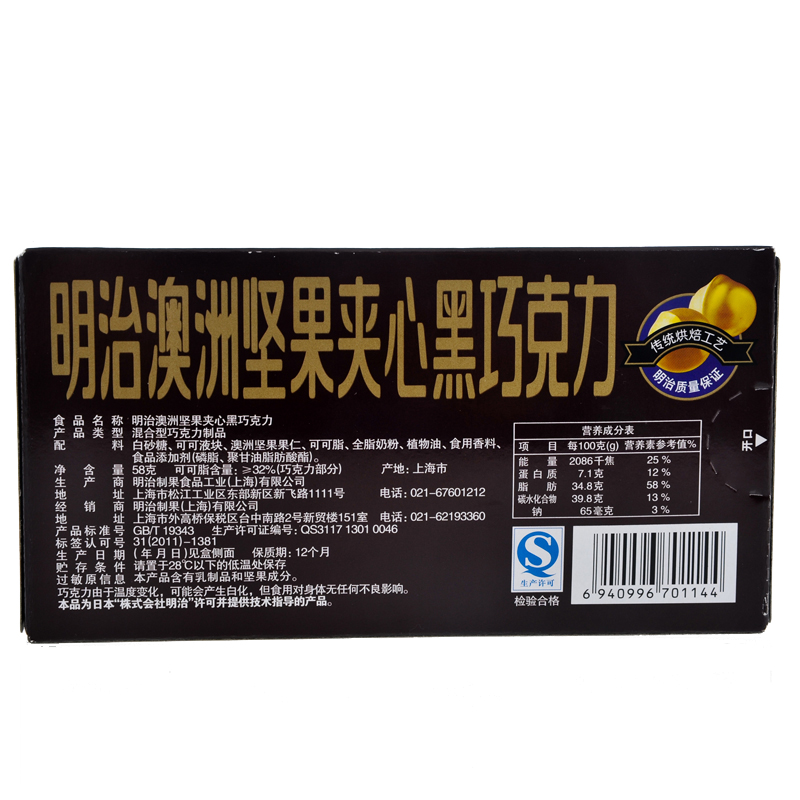 明治meiji 明治巧克力 坚果夹心黑巧克力58g