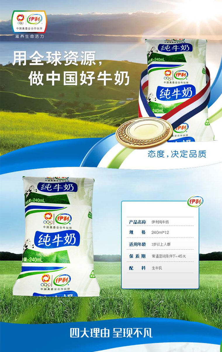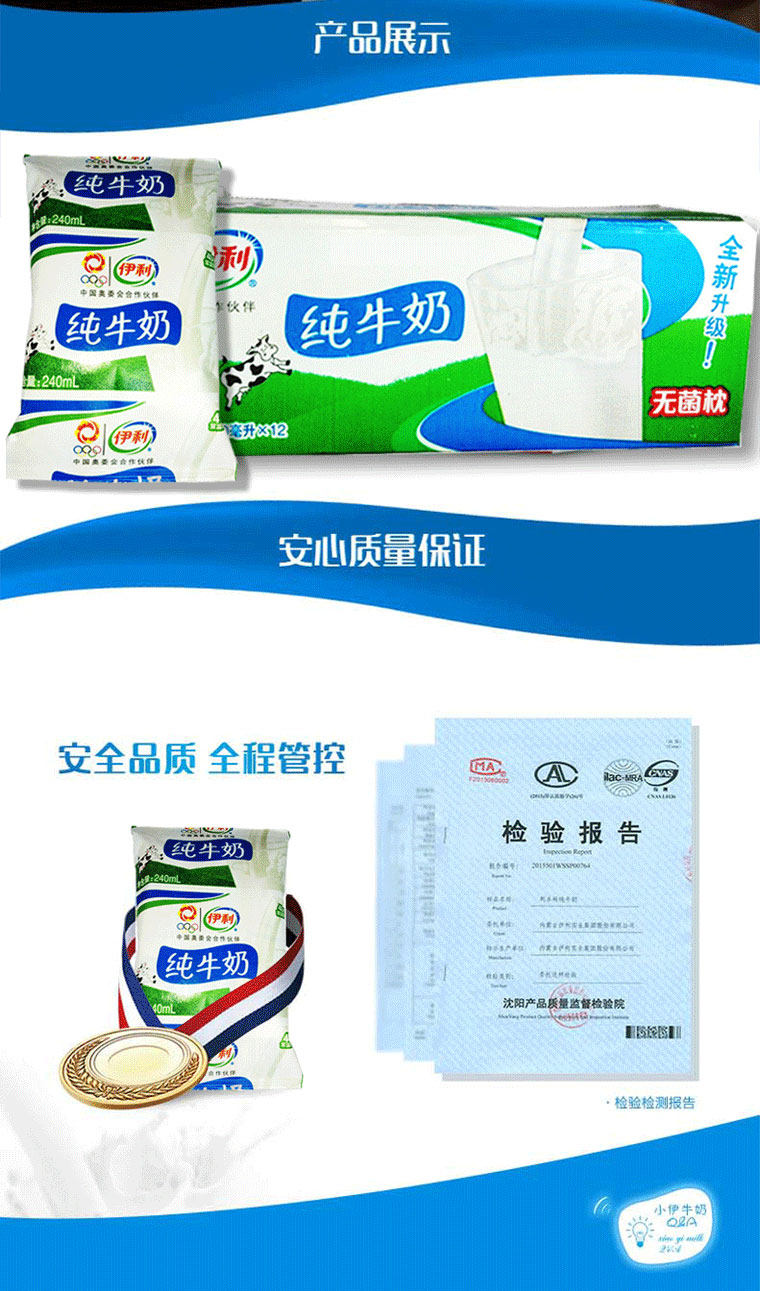 以下是伊利 纯牛奶 240ml*12包/提 整箱袋装小枕早餐配面包的详细说明,厂家介绍,求购联系信息,最终解释权归内蒙古伊利实业集团股份有限公司所有