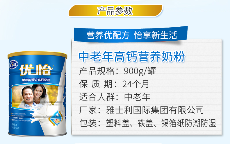 雅士利优怡中小学生高钙奶粉400g袋装(新老包装交替发货)
