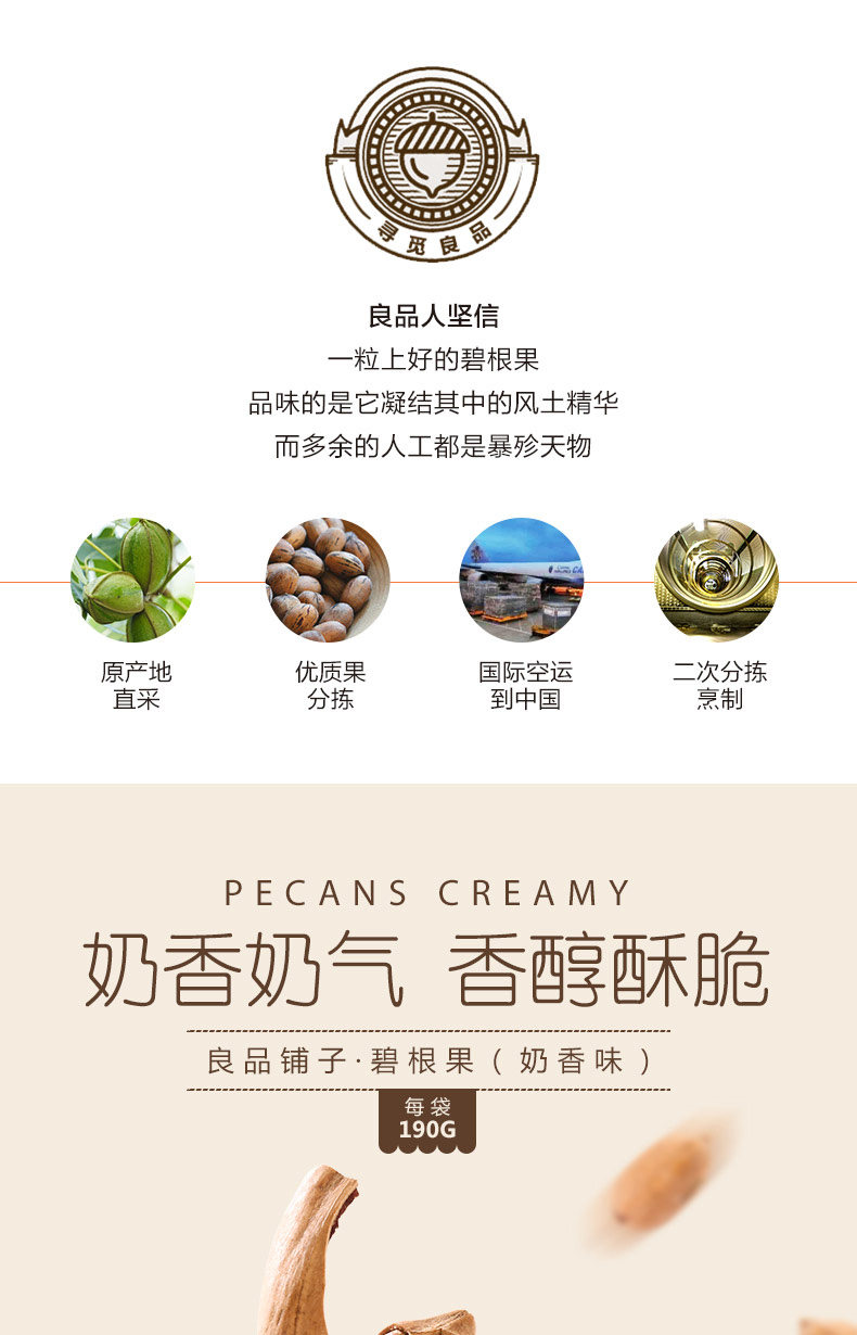 【良品铺子碧根果190gx2袋】奶油味坚果山核桃长寿果干果休闲零食