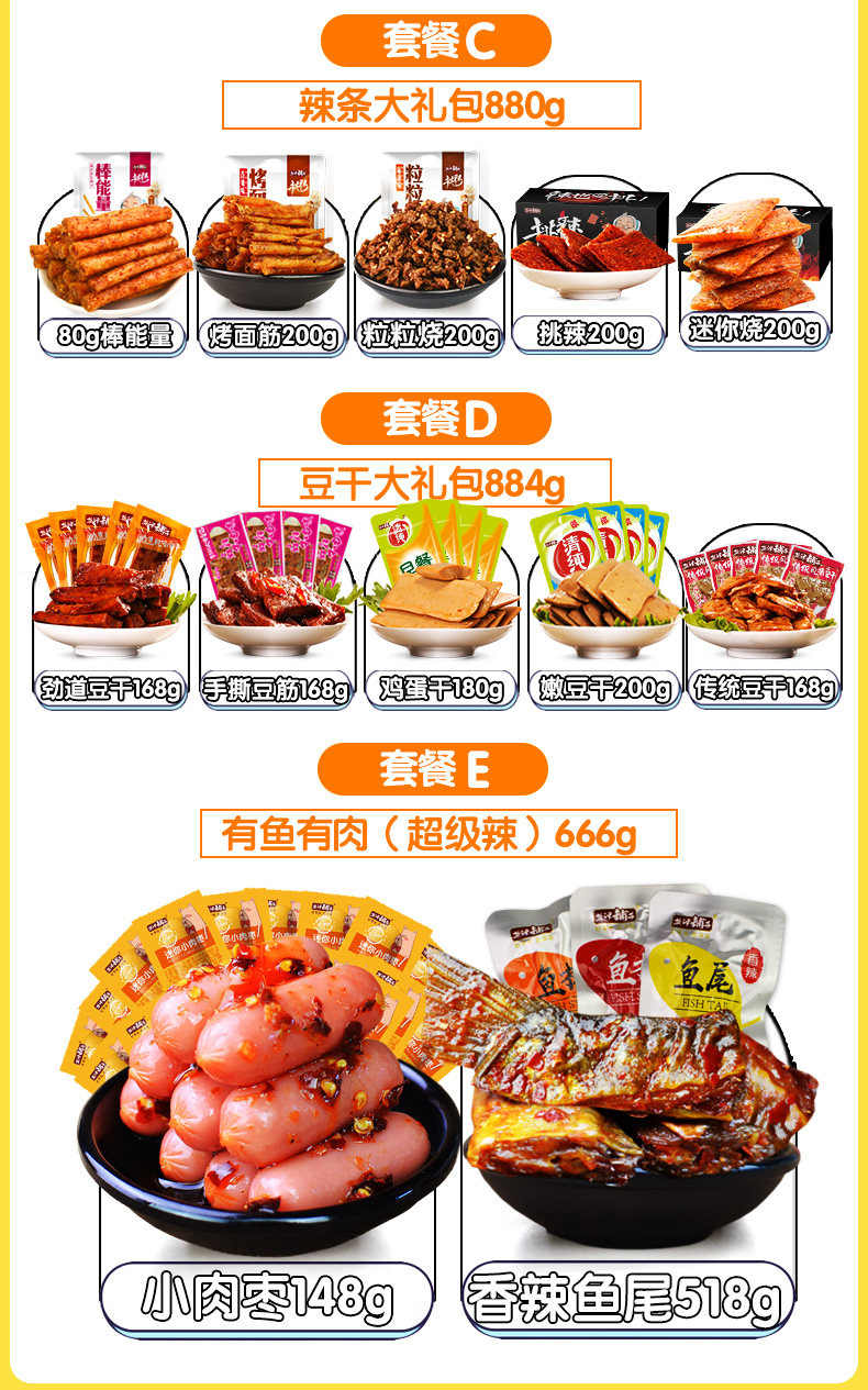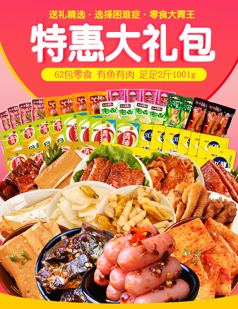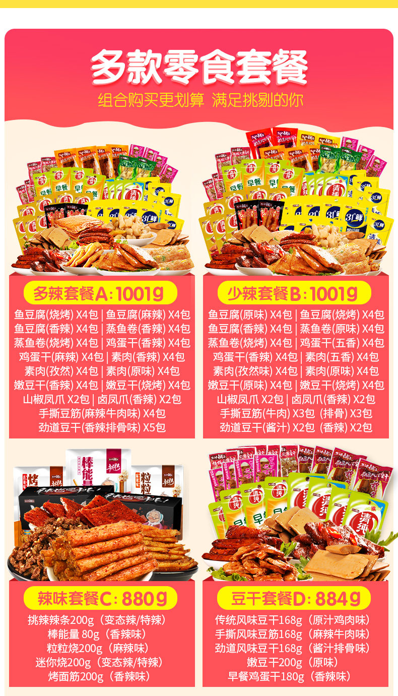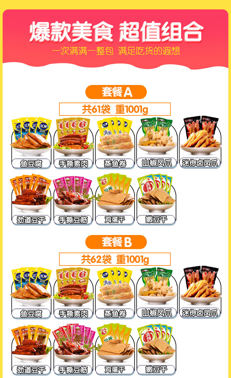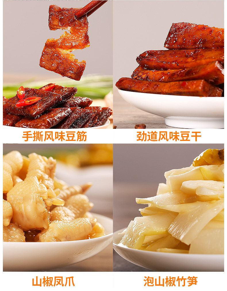 盐津铺子_素食组合1kg 香辣金针菇杏鲍菇泡椒花生红油竹笋小包装