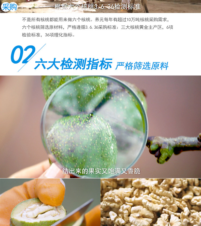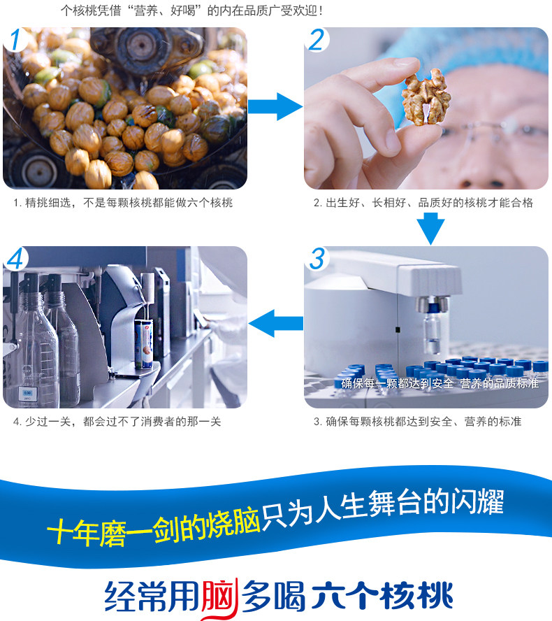 河北养元智汇饮品股份有限公司,六个核桃,成立于1997年,河北省著名商标,行业标准起草参与单位,集研发、生产、销售于一体的大型核桃饮品制造企业 河北养元智汇饮品股份有限公司,成立于1997年,系中国核桃饮品行业的先行者,是集研发、生产、销售于一体的大型核桃饮品制造企业。随着全国化布局的深入,公司目前拥有河北衡水、河南漯河、安徽滁州、四川简阳、江西鹰潭等加工生产基地,年综合产能已达150万吨。 公司自成立以来,心怀“ 专注于提供优质的健脑核桃饮品,致力于提高人生智慧 ”的企业使命,秉持“先机而作、创新品类”的发展战略,十数年如一日专注核桃饮品的研发、培育与推广。通过技术创新、品牌创新以及全产业链建设实现了跨越式的发展,推动核桃乳饮料由风味型边缘饮料品类变身成为“南北通喝、全国同饮”的主流饮料品类。养元智汇仍将持续引领国内核桃饮品行业一路前行。 公司先后主导、参与起草了核桃乳饮料行业标准、核桃乳饮料国家标准,是业内率先通过ISO22000食品安全管理体系认证和ISO9001质量管理体系认证的企业。在十几年的辛勤耕耘中,养元智汇先后荣获河北省轻工业排头兵企业、河北省重点龙头企业、河北省政府质量奖、全国农产品加工业示范企业、全国食品工业优秀龙头食品企业、中国食品产业(植物蛋白饮料行业)标杆品牌、驰名保护等殊荣。 “六个核桃”作为养元智汇的代表性产品,采用养元独创【5·3·28】核桃饮品生产工艺,解决了核桃“味儿涩、难砸、营养不易吸收”的问题。以“安全、美味、营养”的内在品质,“经常用脑,多喝六个核桃”的品牌诉求,缔造了中国饮料史上“飞”一般的销售传奇,连续多年在核桃乳饮品行业销量均高居前列。 面向未来,公司将继续秉承“专注核桃饮品”的发展战略,恪守“做憨厚人、行严格事、汇众人智、立百年业”的核心价值观,全心致力于技术、品质、品牌和市场的升级,在引领核桃乳饮料行业健康前行的同时,致力于打造卓越民族品牌。