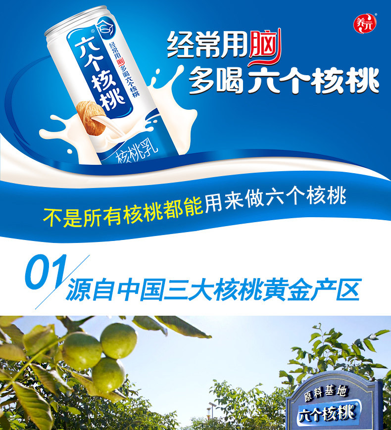 六个核桃乳饮品植物蛋白饮料精品型240ml*20罐核桃乳礼盒装饮料