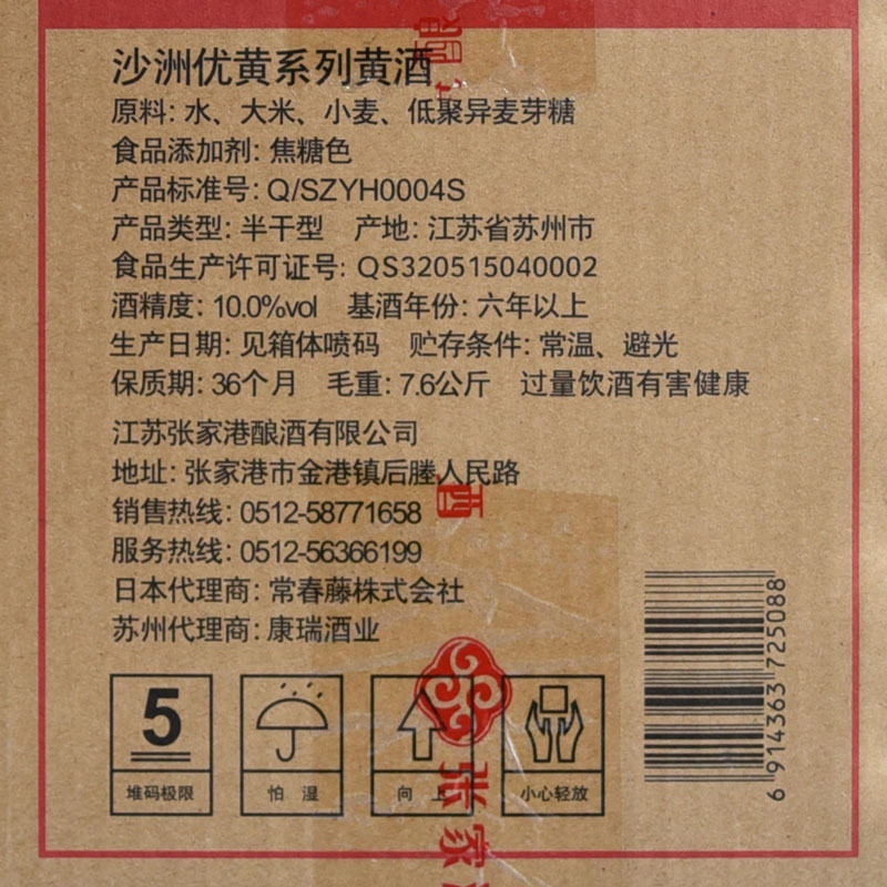 厂家直销沙洲优黄黄酒 沙洲干黄八年陈 8*480ml整箱