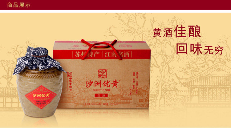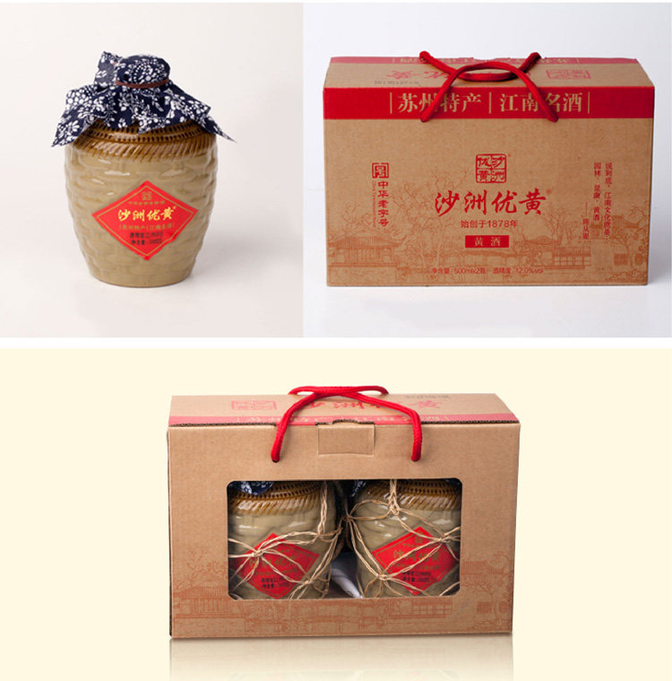 厂家直销沙洲优黄黄酒坛装礼盒六年陈苏州特产江南名酿2*500ml