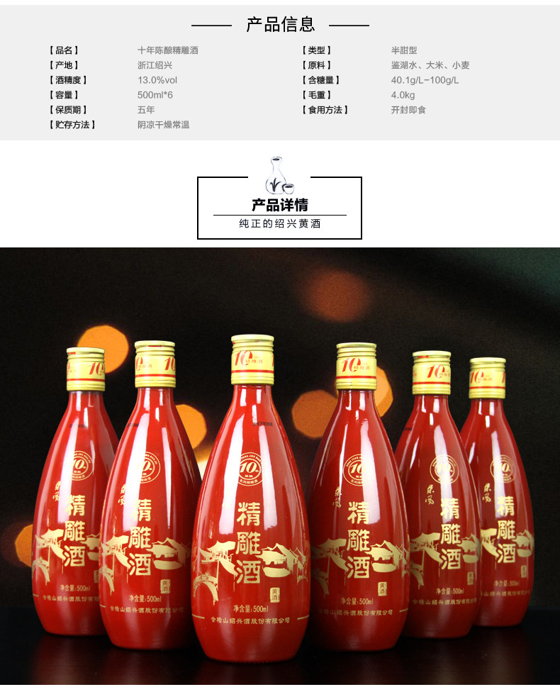 绍兴黄酒 会稽山 礼盒装精雕十六 甜型香雪酒绍兴特产2.5L陶坛