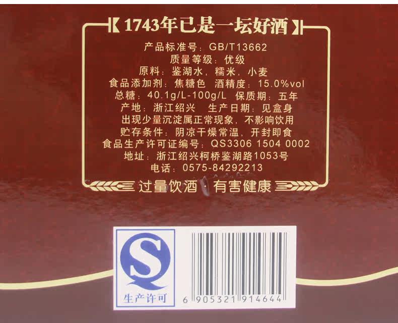 会稽山绍兴黄酒纯正五年陈年花雕酒加饭酒绍兴特产500ml单瓶
