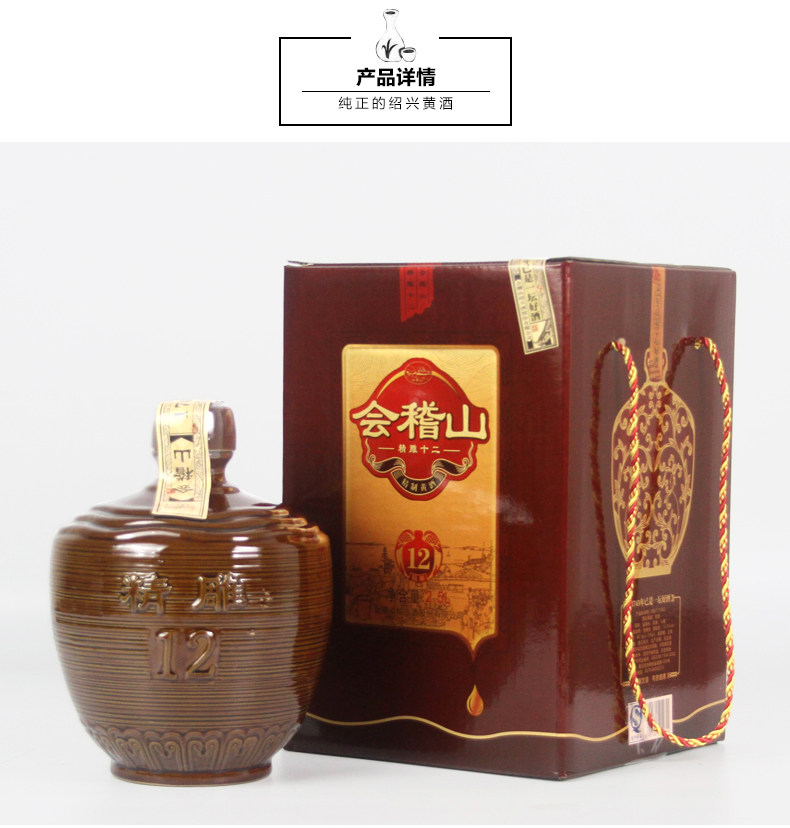 会稽山绍兴黄酒礼盒装精雕十二 半甜型善酿酒绍兴特产2.5L陶坛