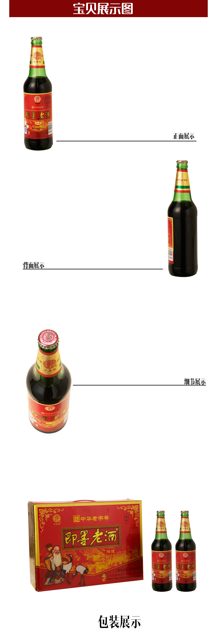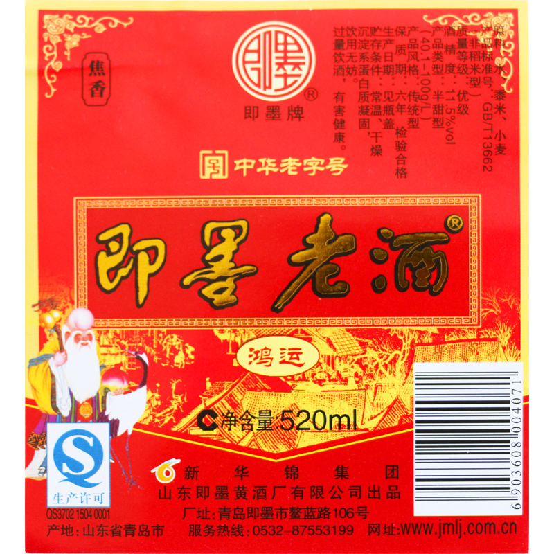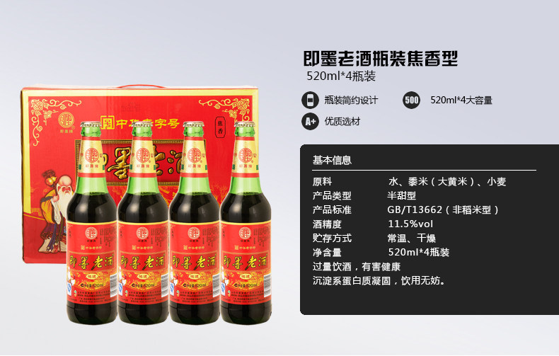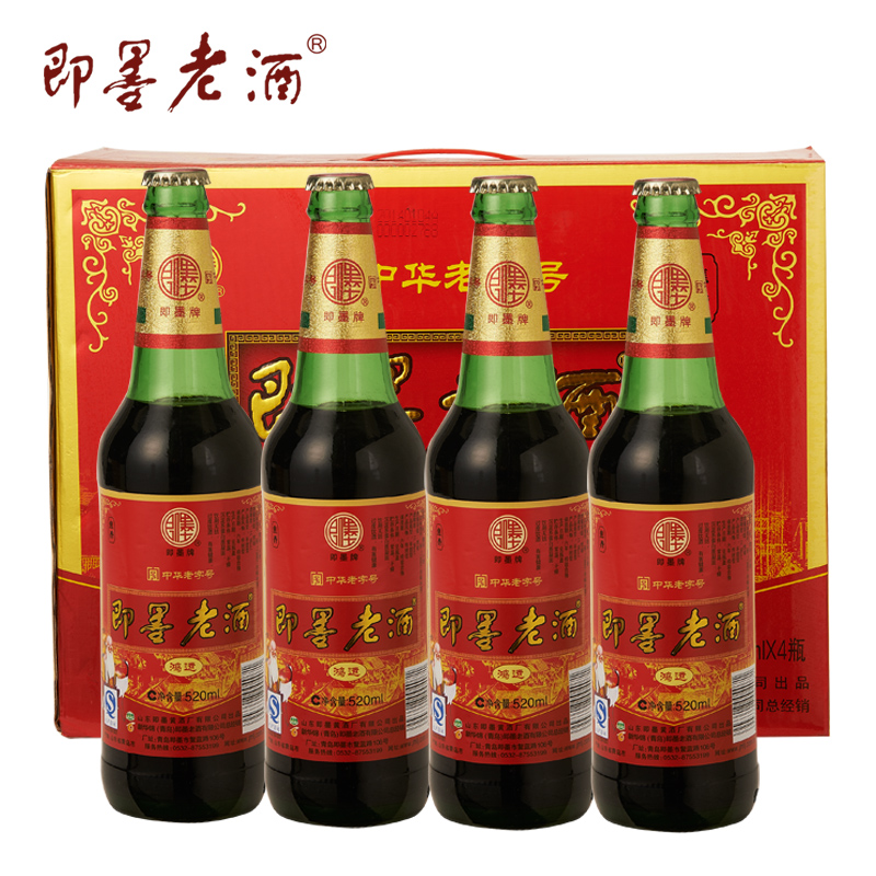 即墨老酒鸿运520mlx4瓶整箱礼盒装半甜型即墨黄酒包邮