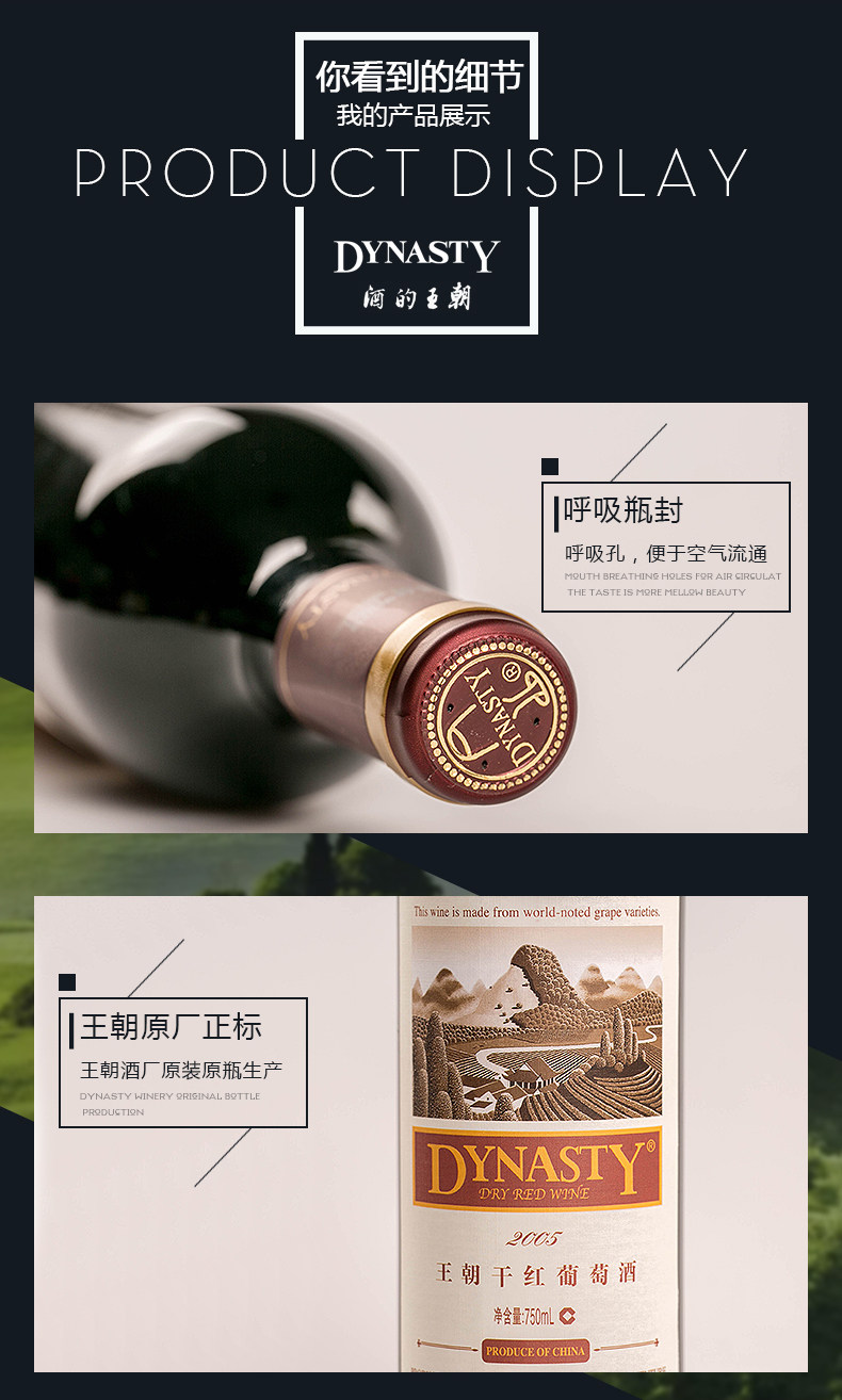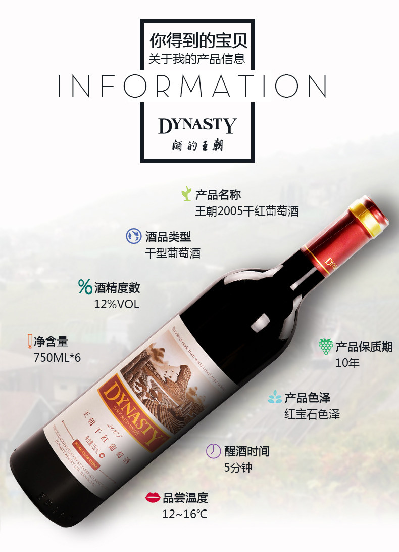 王朝红酒 中法合营王朝干红葡萄酒 DYNASTY王朝窖藏干红 750ml*6