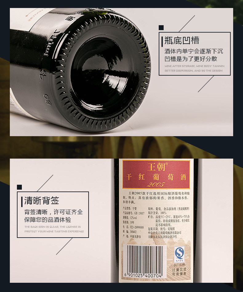 王朝珍藏橡木桶干红葡萄酒750ml婚宴赤霞珠国产红酒整箱6支装正品