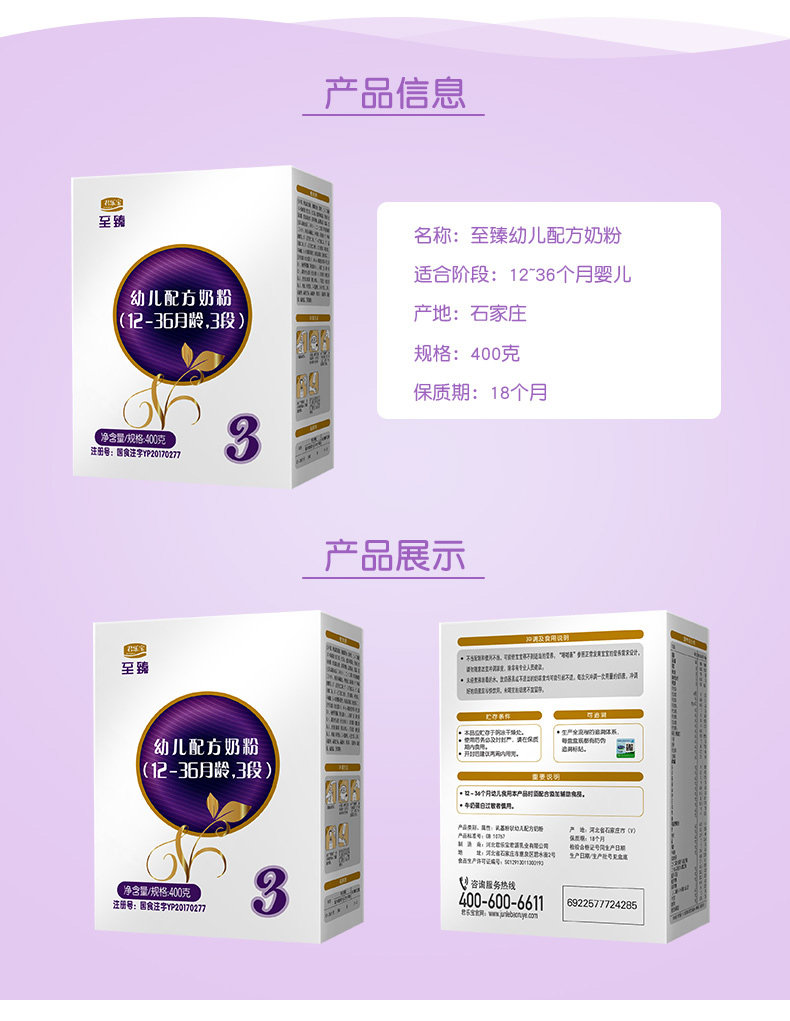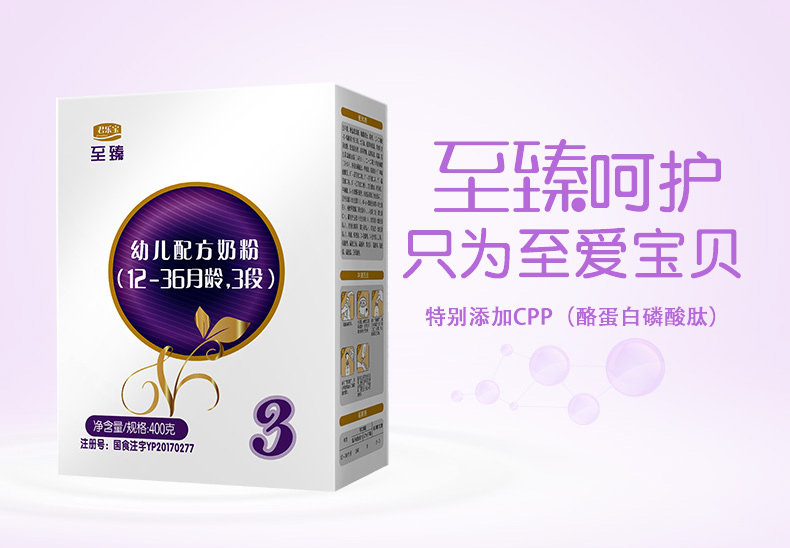 以下是君乐宝奶粉官方旗舰店 3段至臻白金装幼儿牛奶粉三段 400g*1盒的详细说明,厂家介绍,求购联系信息,最终解释权归石家庄君乐宝乳业有限公司所有