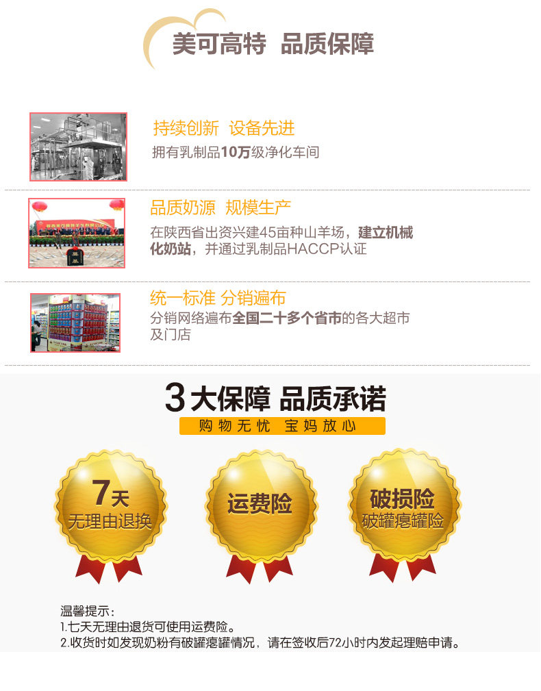 美可高特宝宝奶粉羊奶粉红罐2段大婴600g婴儿童羊奶粉包邮