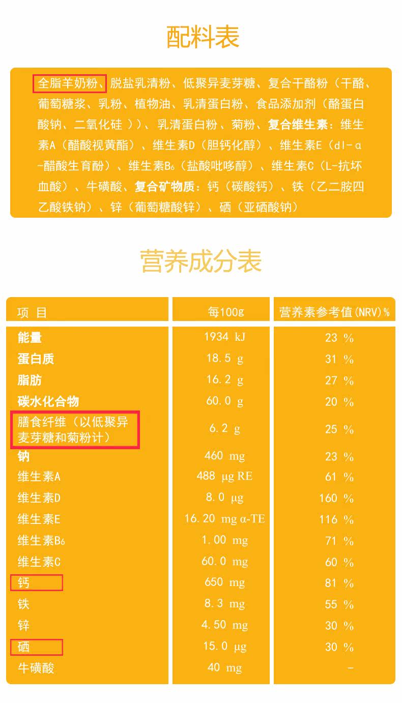 美可高特成人羊奶粉营养成份奶粉600g全脂成人罐装羊奶粉